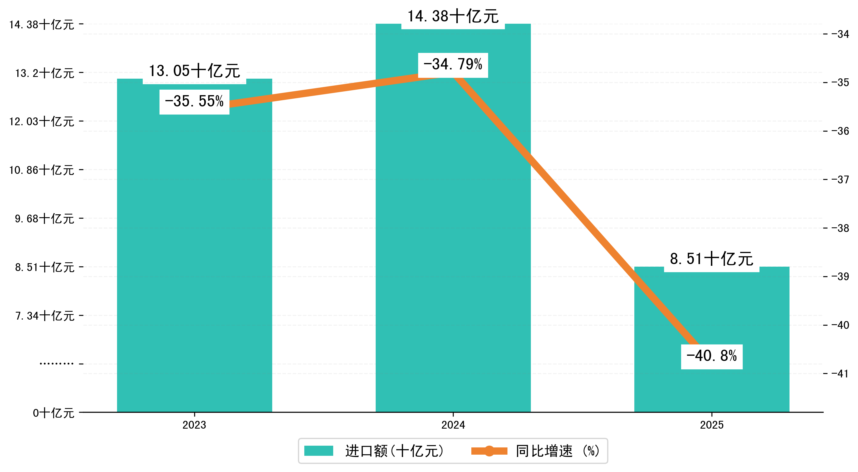 以人民币计,2025年2月沈阳市进口额为42,7978.1322万元,相比上月增加了4859.6851万元;相比上年同期减少了35,2861.1078万元,同比减少了-40.60%。