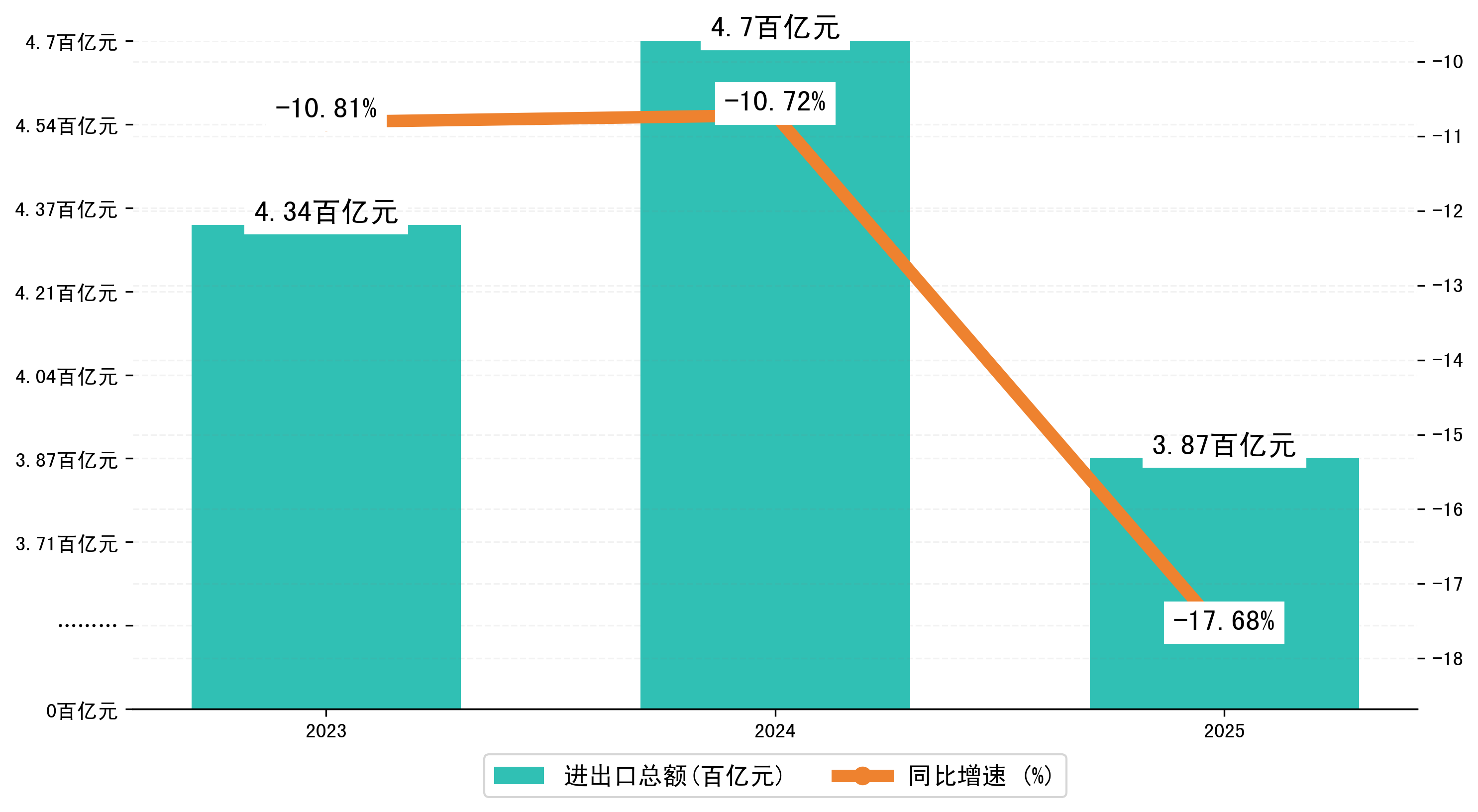 以人民币计,2025年1-4月沈阳市进出口总额为387,2671.3668万元,相比上年同期减少了83,1774.9985万元,同比减少了-17.50%。