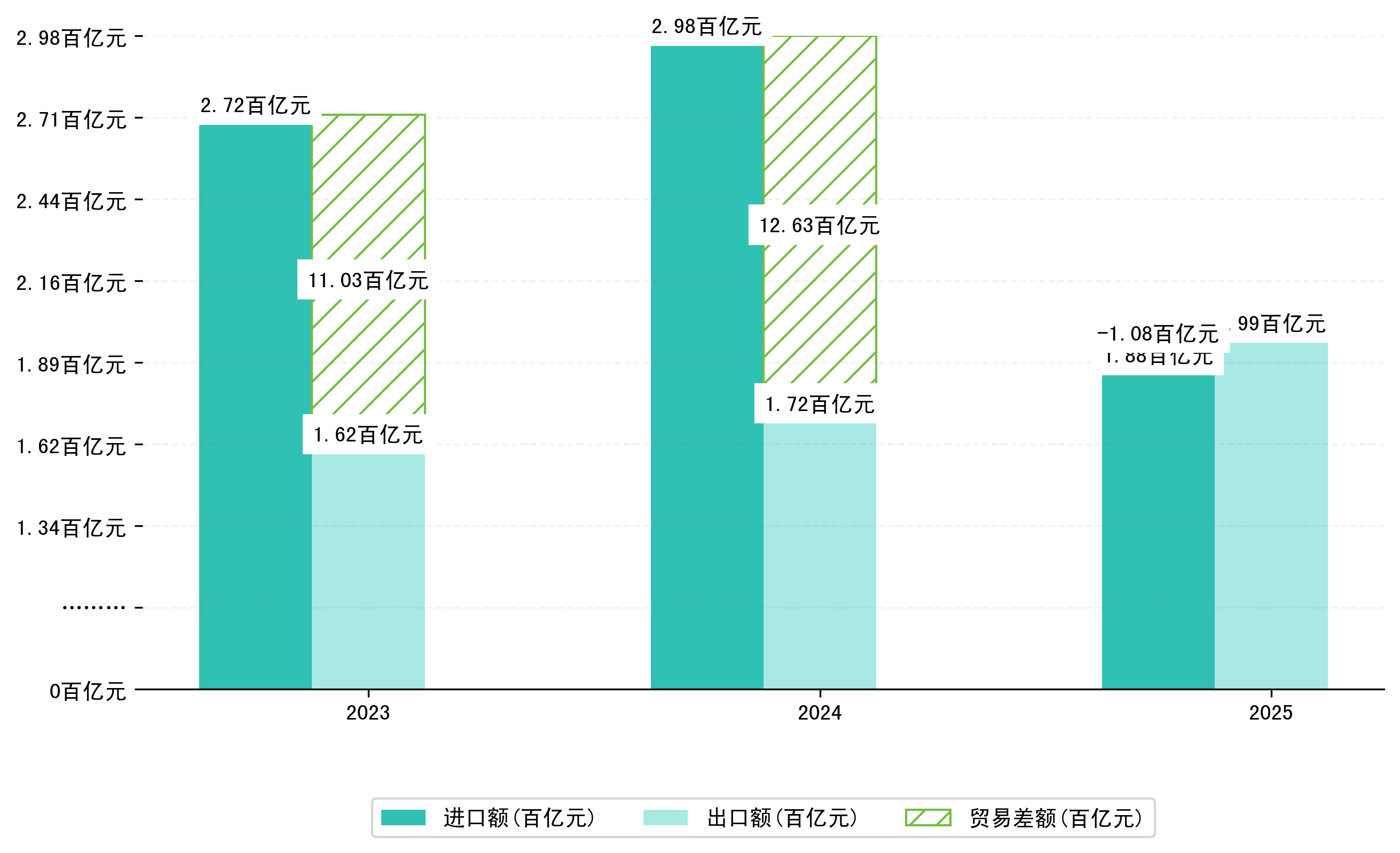 以人民币计,2025年4月沈阳市贸易差额为102,5866万元(贸易顺差),相比上月增加了3,3457,9222万元,即5201,6455万美元;相比上年同期增加了38,8930,8462万元,同比增加-100.03%。