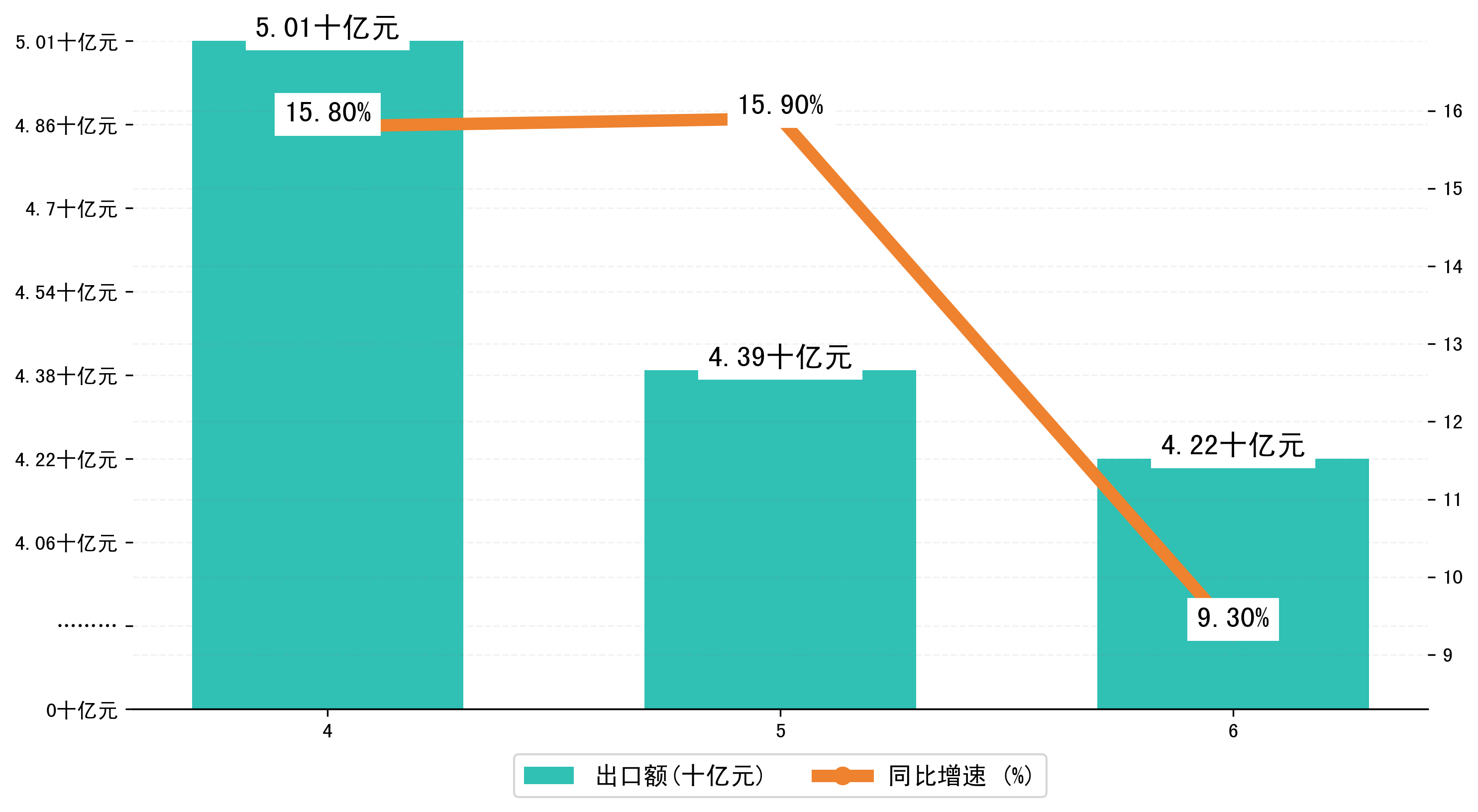 一、2025年6月沈阳市单月出口总额及进出口差额统计分析