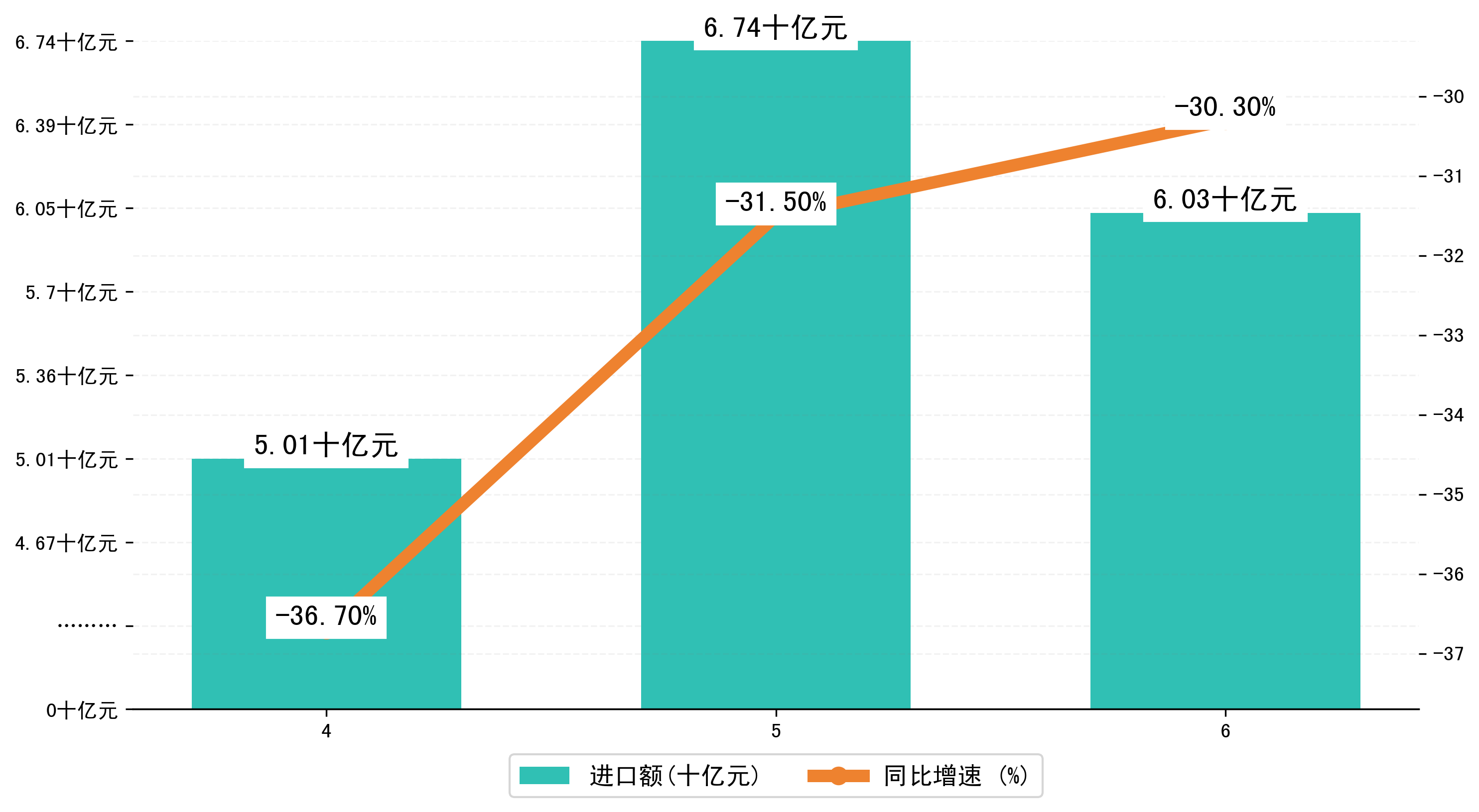 以人民币计,2025年6月沈阳市进口额为60,2648.0947万元,相比上月减少了7,0854.6525万元;相比上年同期减少了20,1591.7067万元,同比减少了-30.30%。