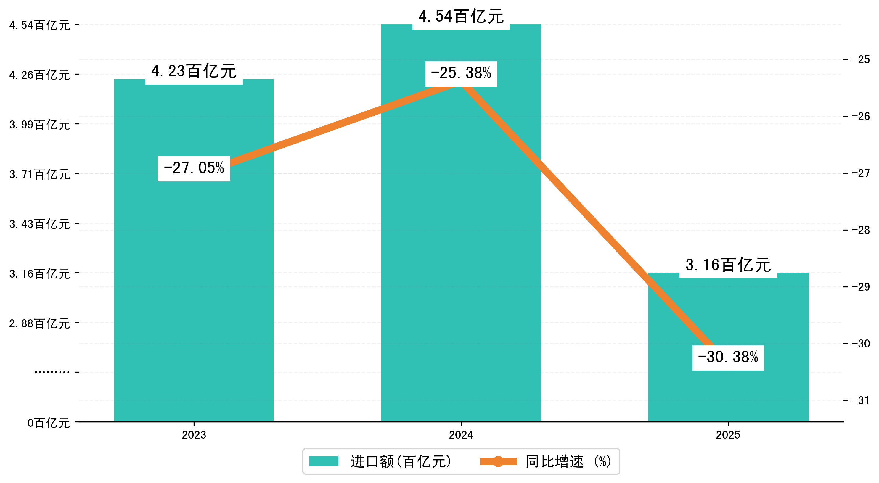 以人民币计,2025年1-6月沈阳市进口额为315,8605.6996万元,相比上年同期减少了137,8387.9348万元,同比减少了-30.30%。