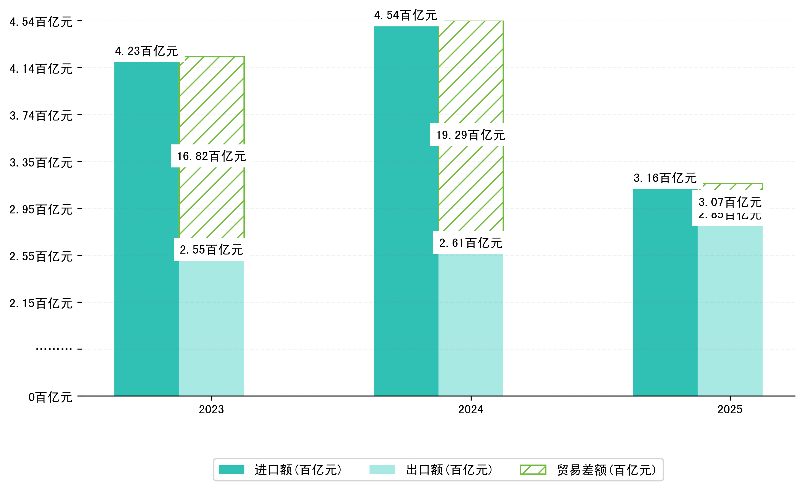 以美元计,2025年6月沈阳市贸易差额为2,5390,2336万美元(贸易逆差),相比上月增加了6895,6465万美元;相比上年同期增加了1,6111,5281万美元,同比增加-38.82%。
