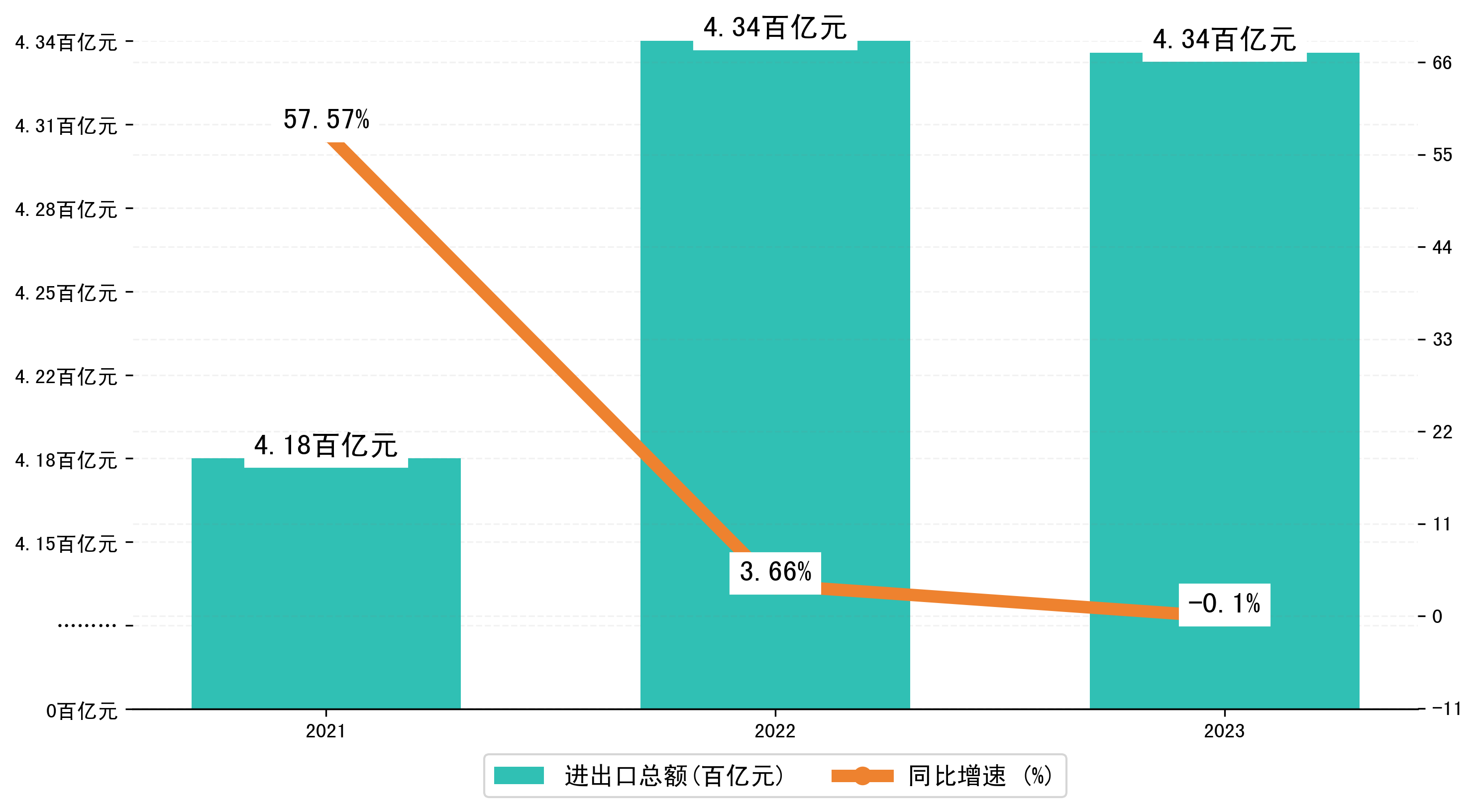 以人民币计,2023年1-4月沈阳市进出口总额为433,7438.8536万元,相比上年同期减少了4487.7058万元,同比增加了0.00%。