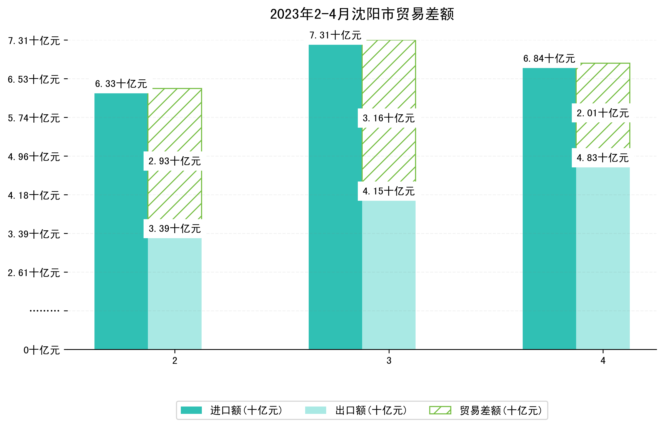 2023年4月沈阳市进出口总额及进出口差额统计分析
