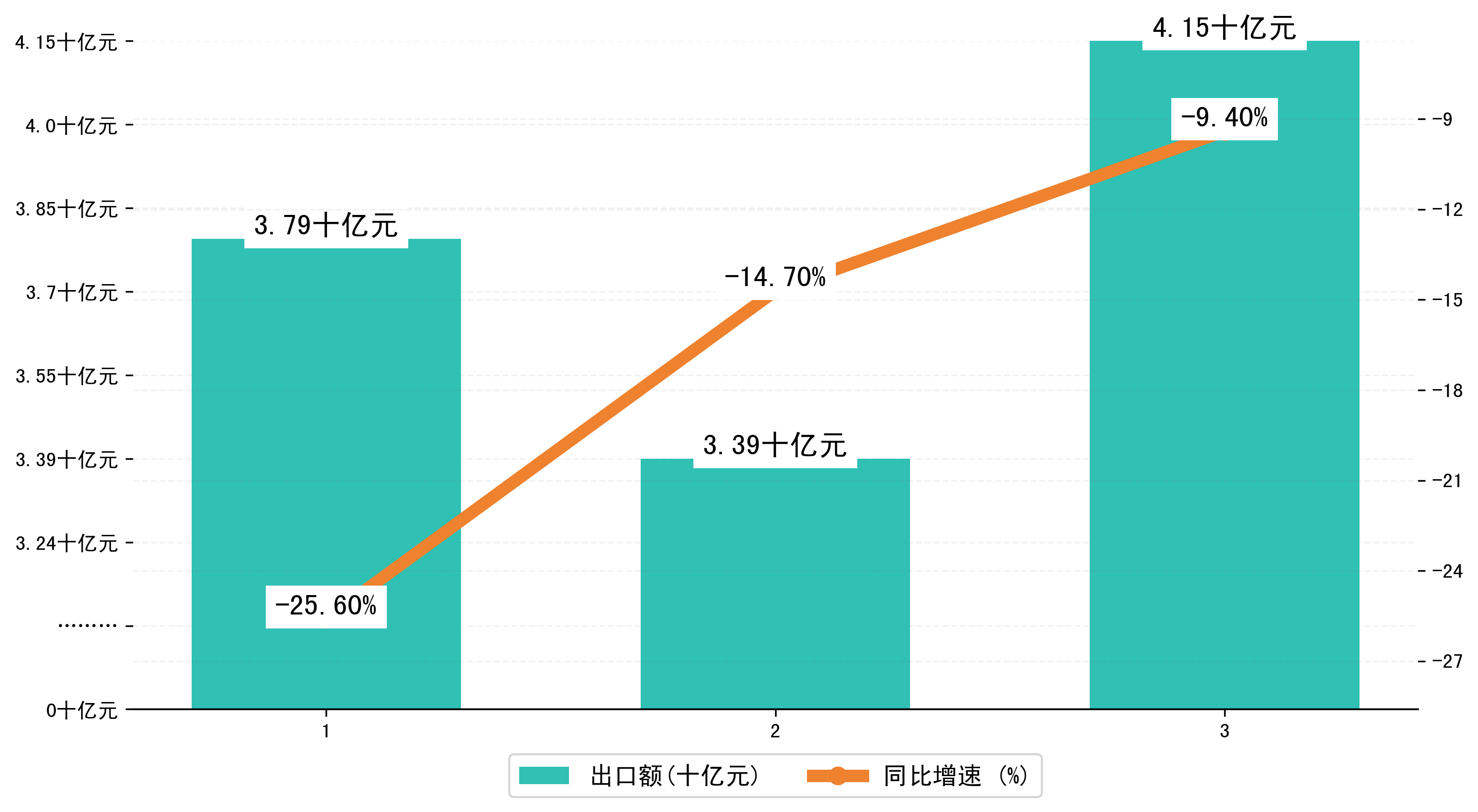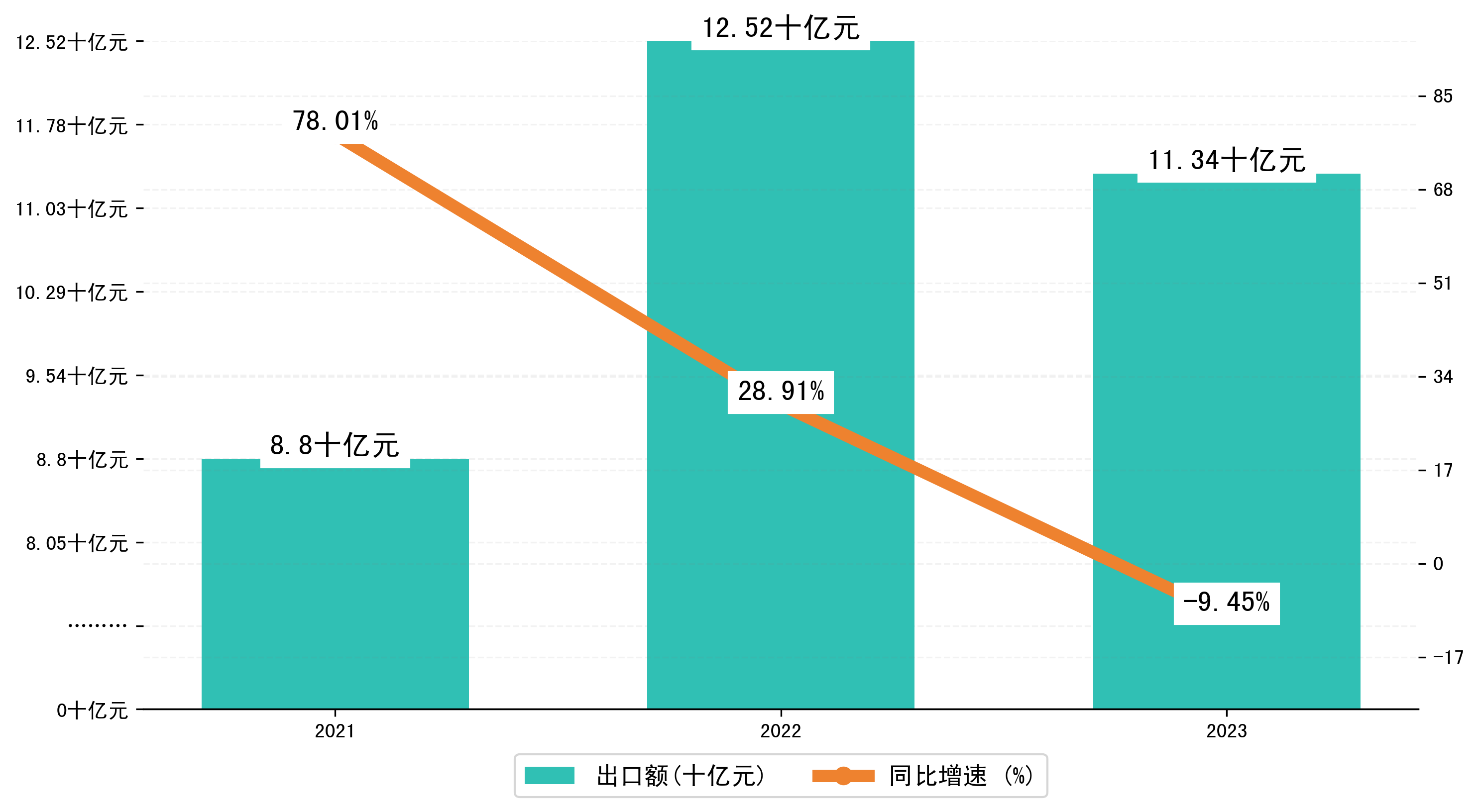 以人民币计,2023年1-3月沈阳市出口额为113,4007.2796万元,相比上年同期减少了11,8285.4986万元,同比减少了-9.40%。