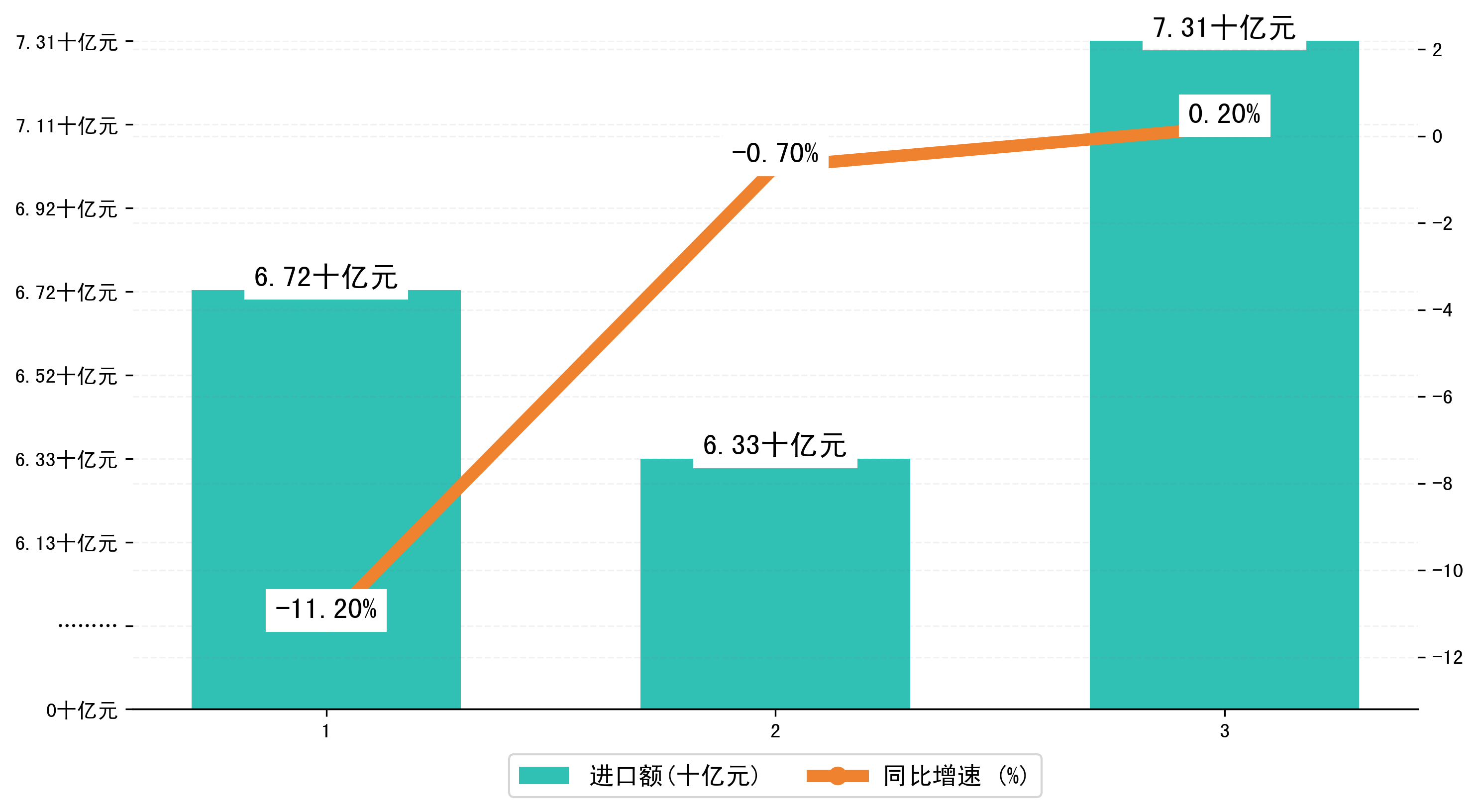 以人民币计,2023年3月沈阳市进口额为73,1067.5002万元,相比上月增加了9,8280.4037万元;相比上年同期增加了1,3597.2852万元,同比增加了0.20%。