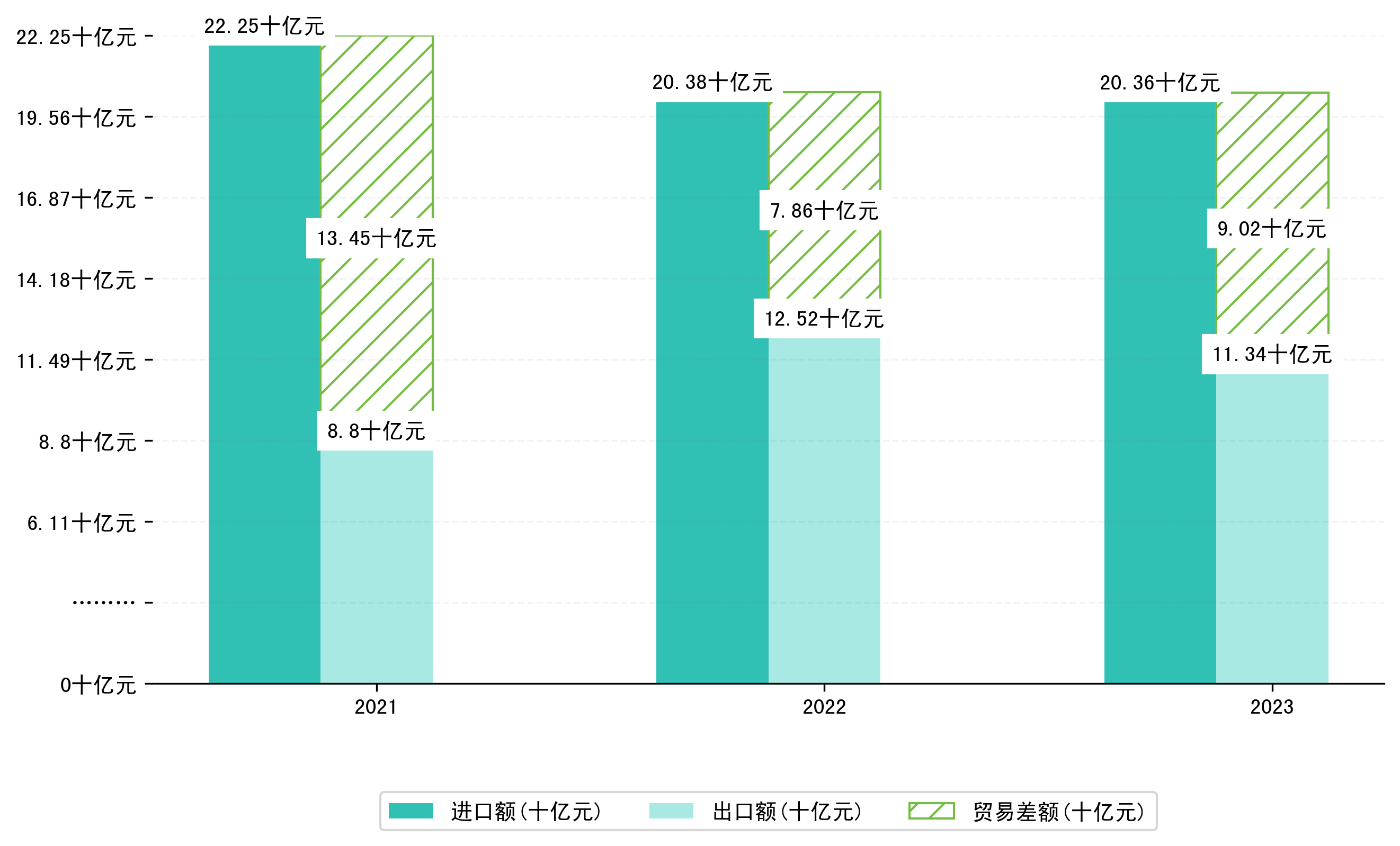 以美元计,2023年1-3月沈阳市贸易差额为13,0876,3216万美元(贸易逆差),相比上年同期减少了9022,4212万美元,同比减少7.4%。