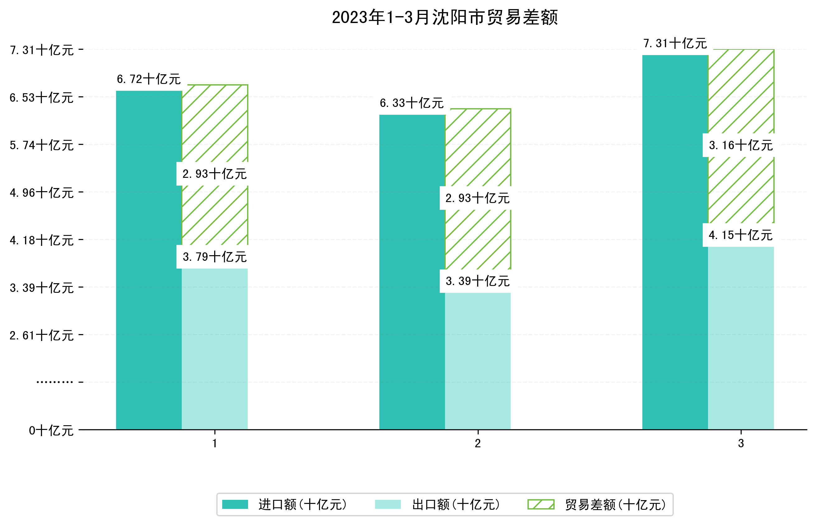 2023年3月沈阳市进出口总额及进出口差额统计分析