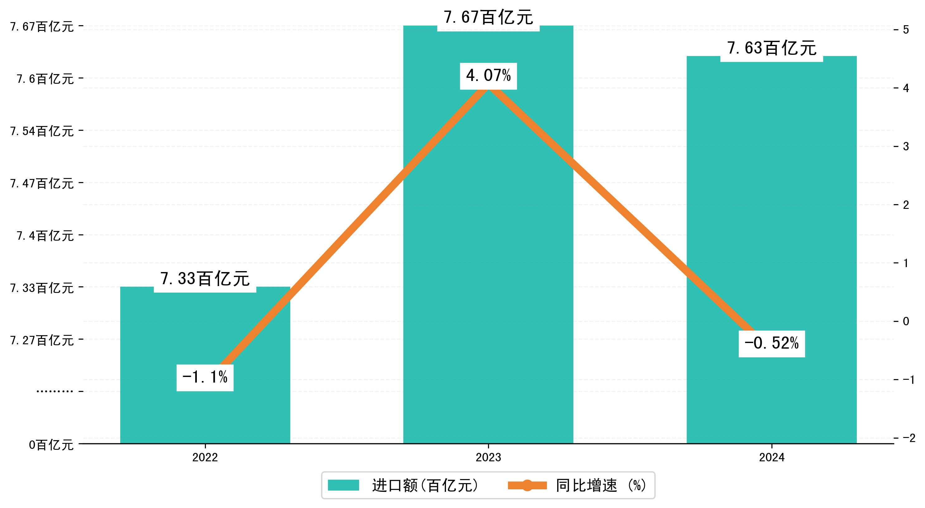 以人民币计,2024年1-10月沈阳市进口额为763,1656.8298万元,相比上年同期减少了3,9622.5886万元,同比减少了-0.50%。