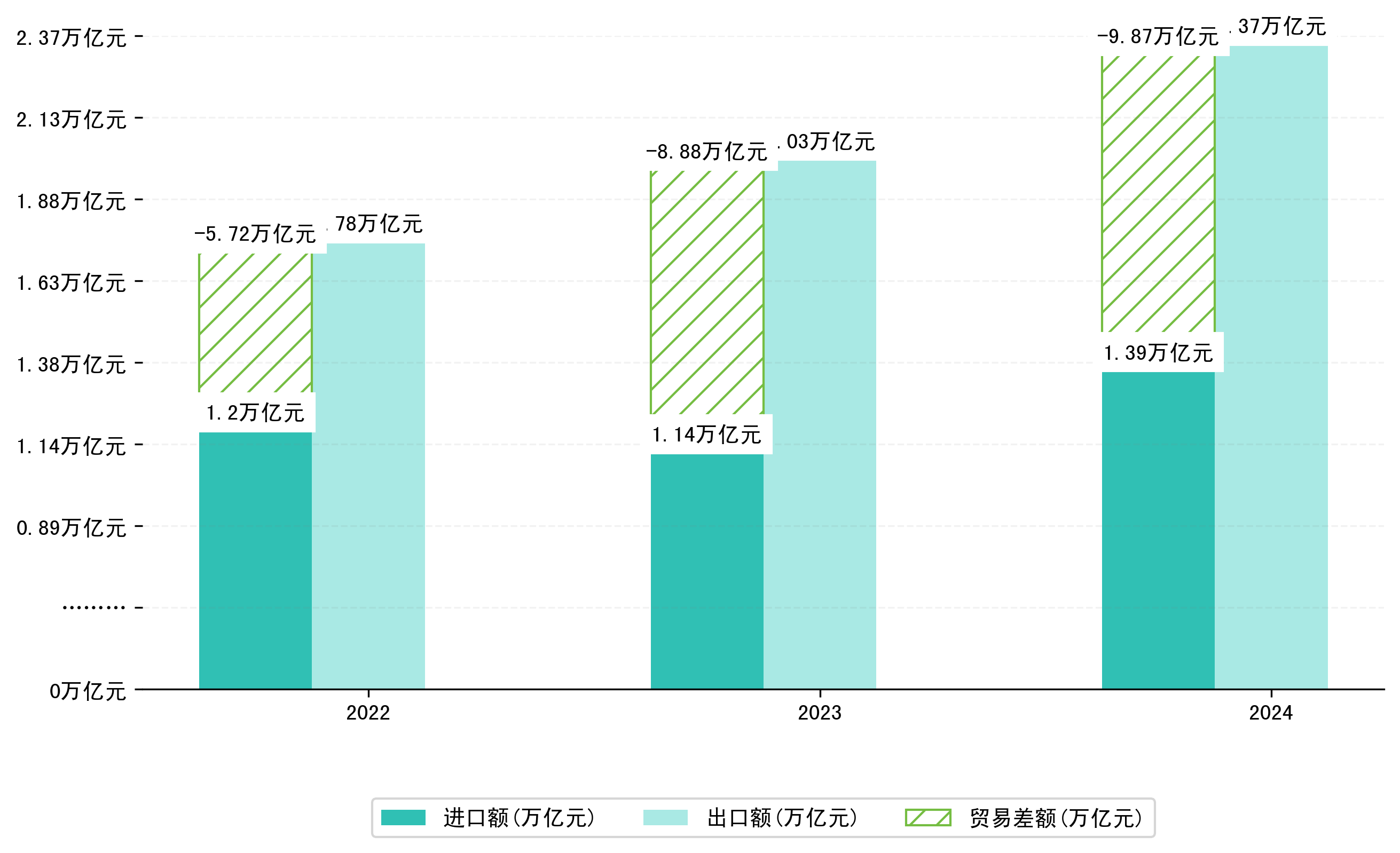以人民币计,2024年1-10月深圳市贸易差额为9873,8790,5507万元(贸易顺差),相比上年同期增加了990,4177,7696万元,同比增加11.15%。