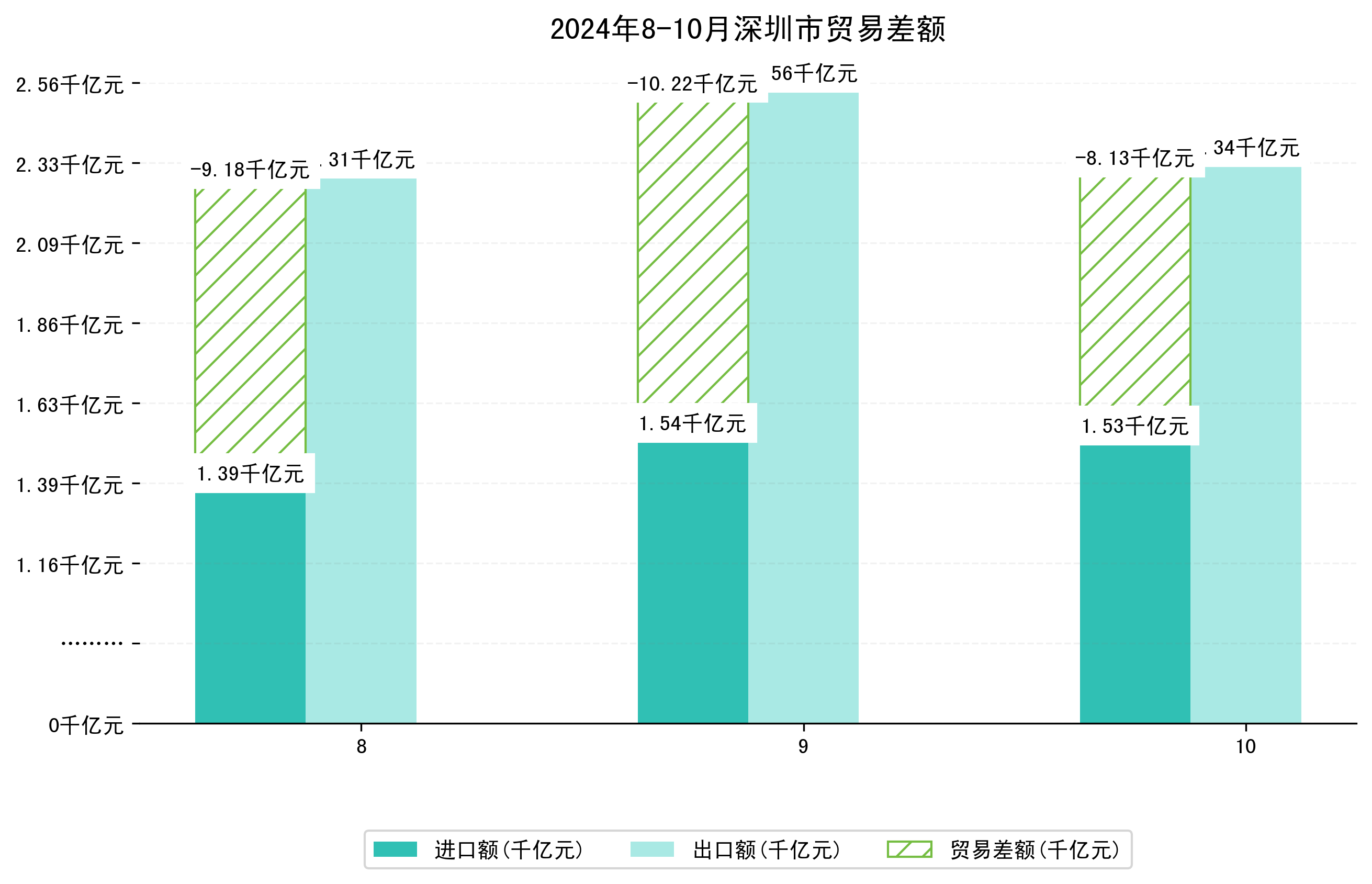 2024年10月深圳市进出口总额及进出口差额统计分析