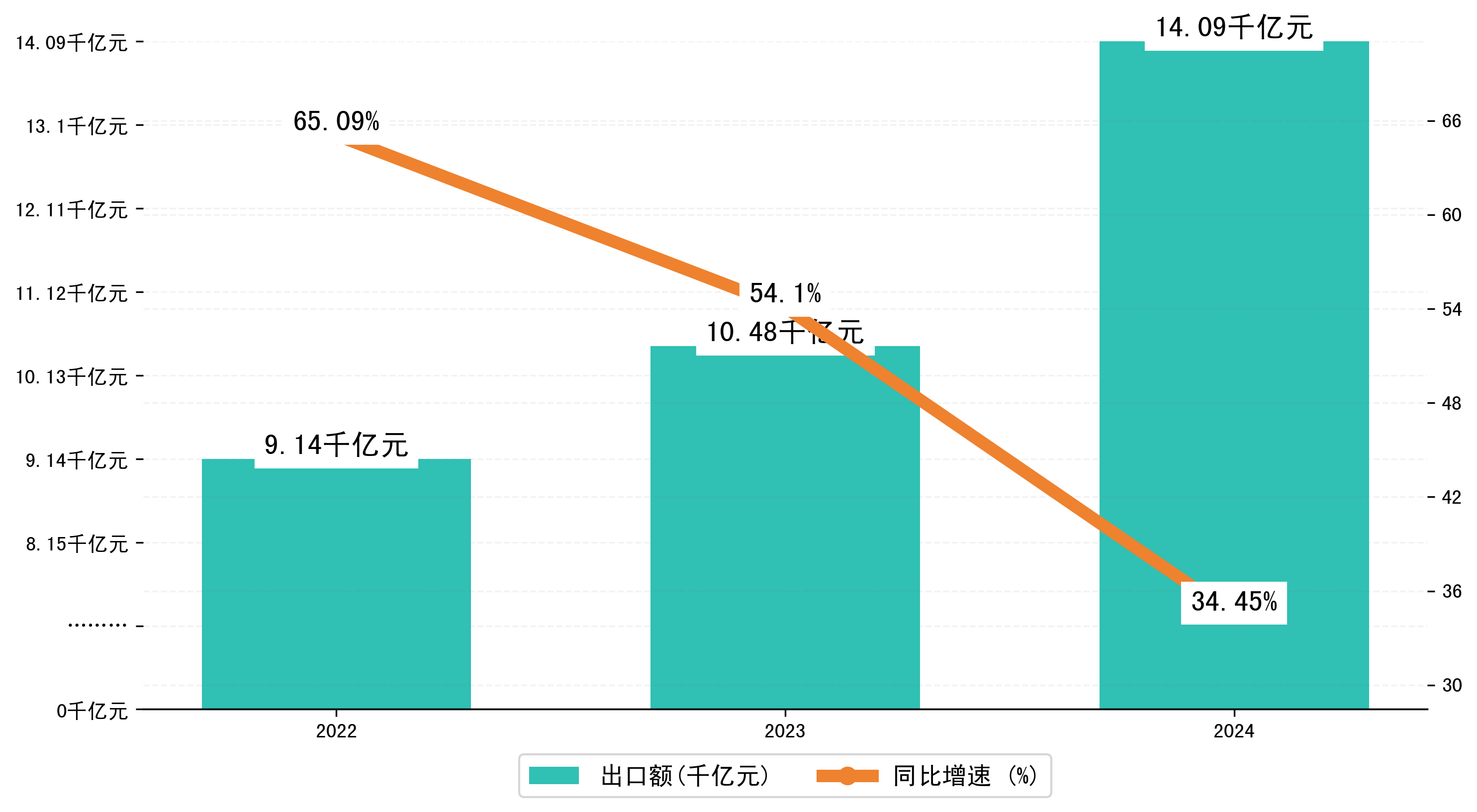 以人民币计,2024年1-6月深圳市出口额为1,4088,7242.2579万元,相比上年同期增加了3609,9035.8439万元,同比增加了34.90%。