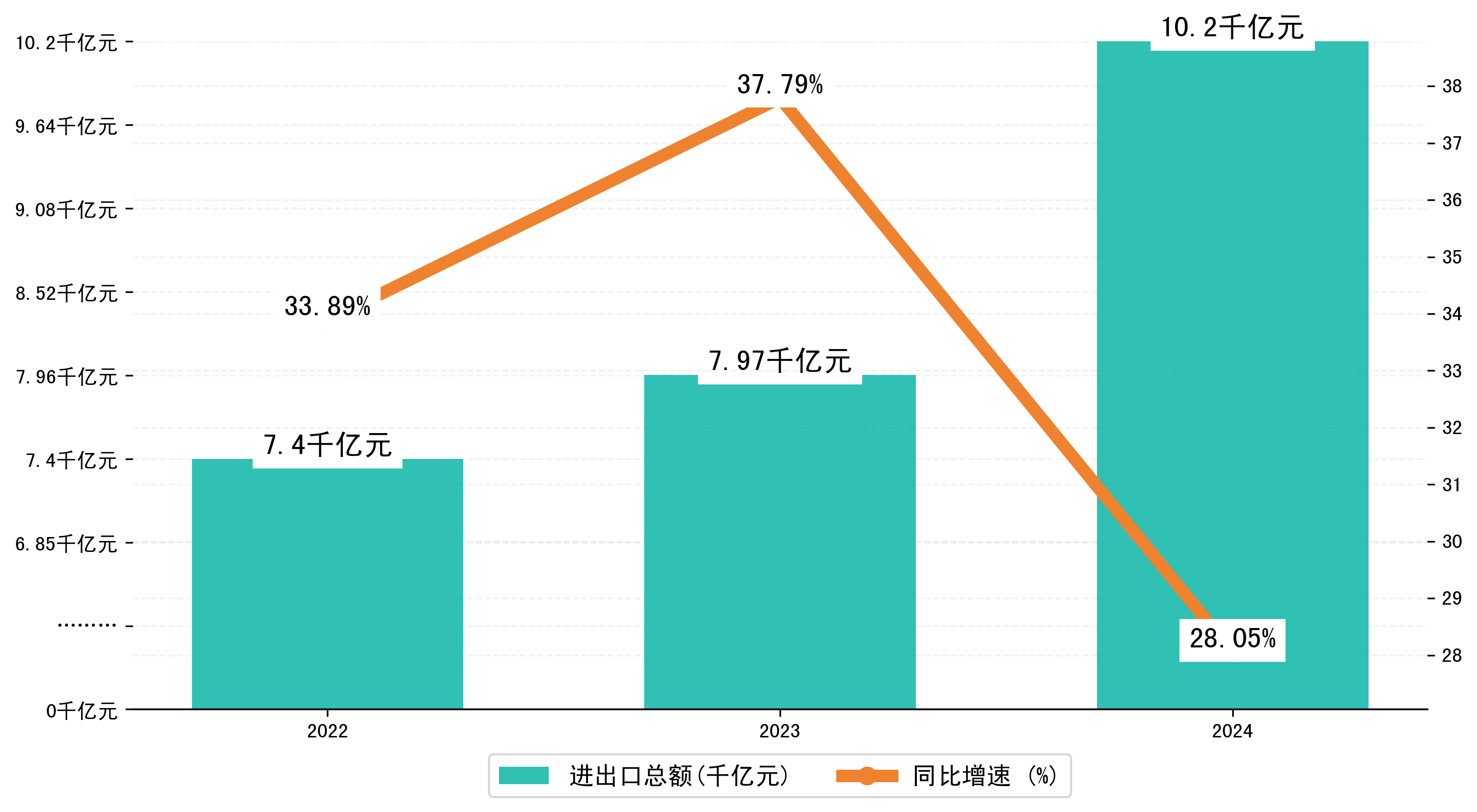 以人民币计,2024年1-3月深圳市进出口总额为1,0202,8833.6038万元,相比上年同期增加了2235,2729.5358万元,同比增加了28.80%。
