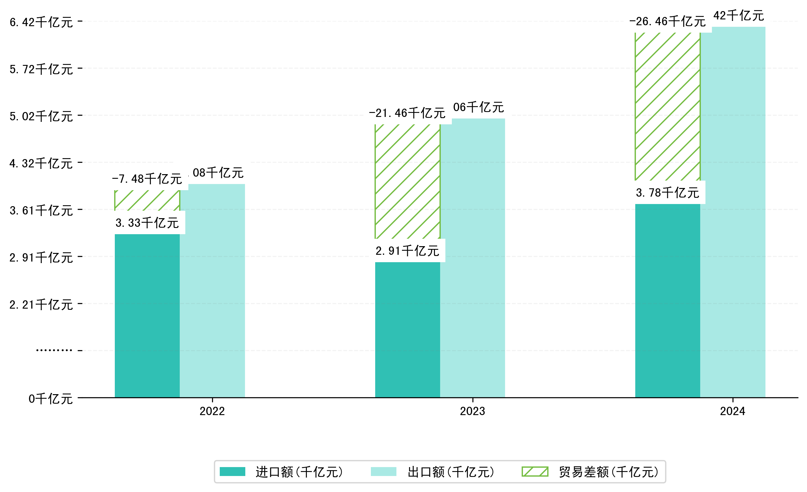 以人民币计,2024年1-3月深圳市贸易差额为2645,8566,4860万元(贸易顺差),相比上年同期增加了499,3996,5968万元,同比增加23.27%。