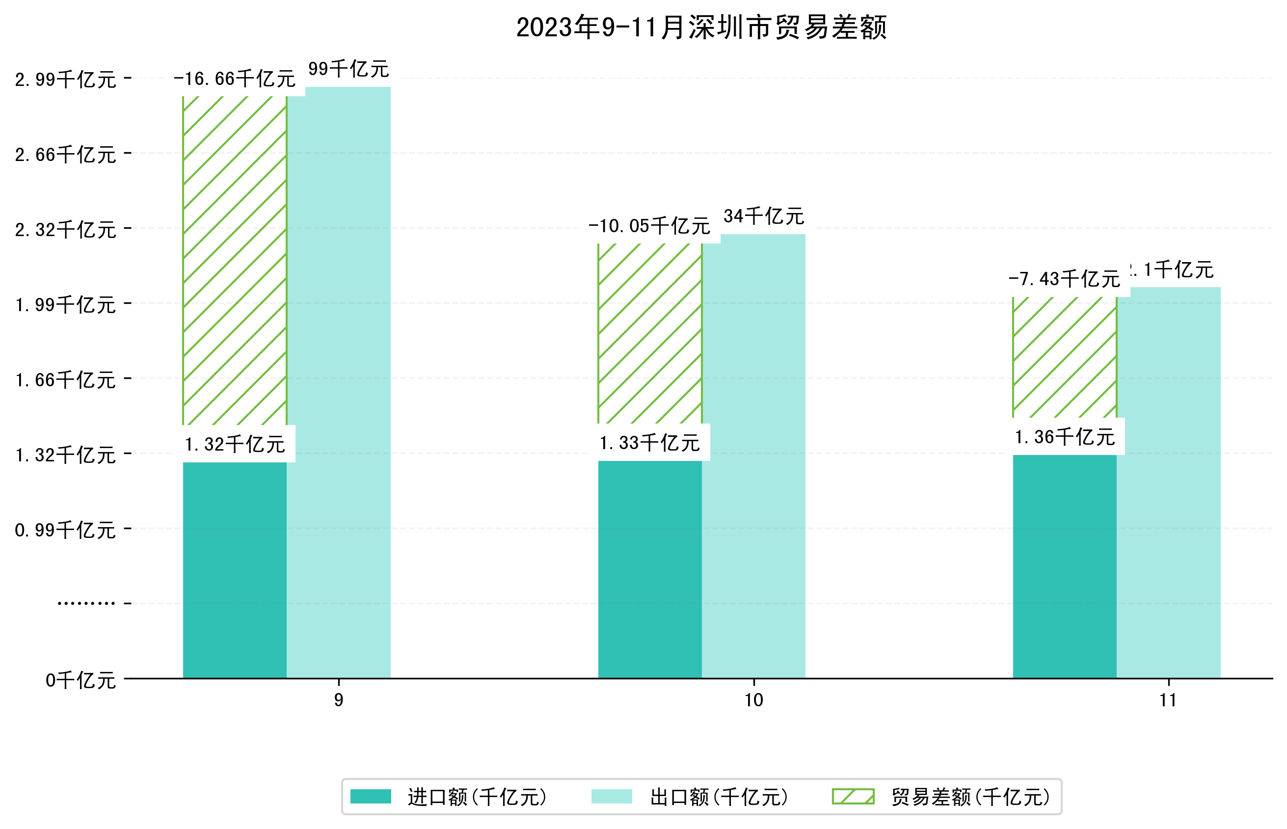 2023年11月深圳市进出口总额及进出口差额统计分析