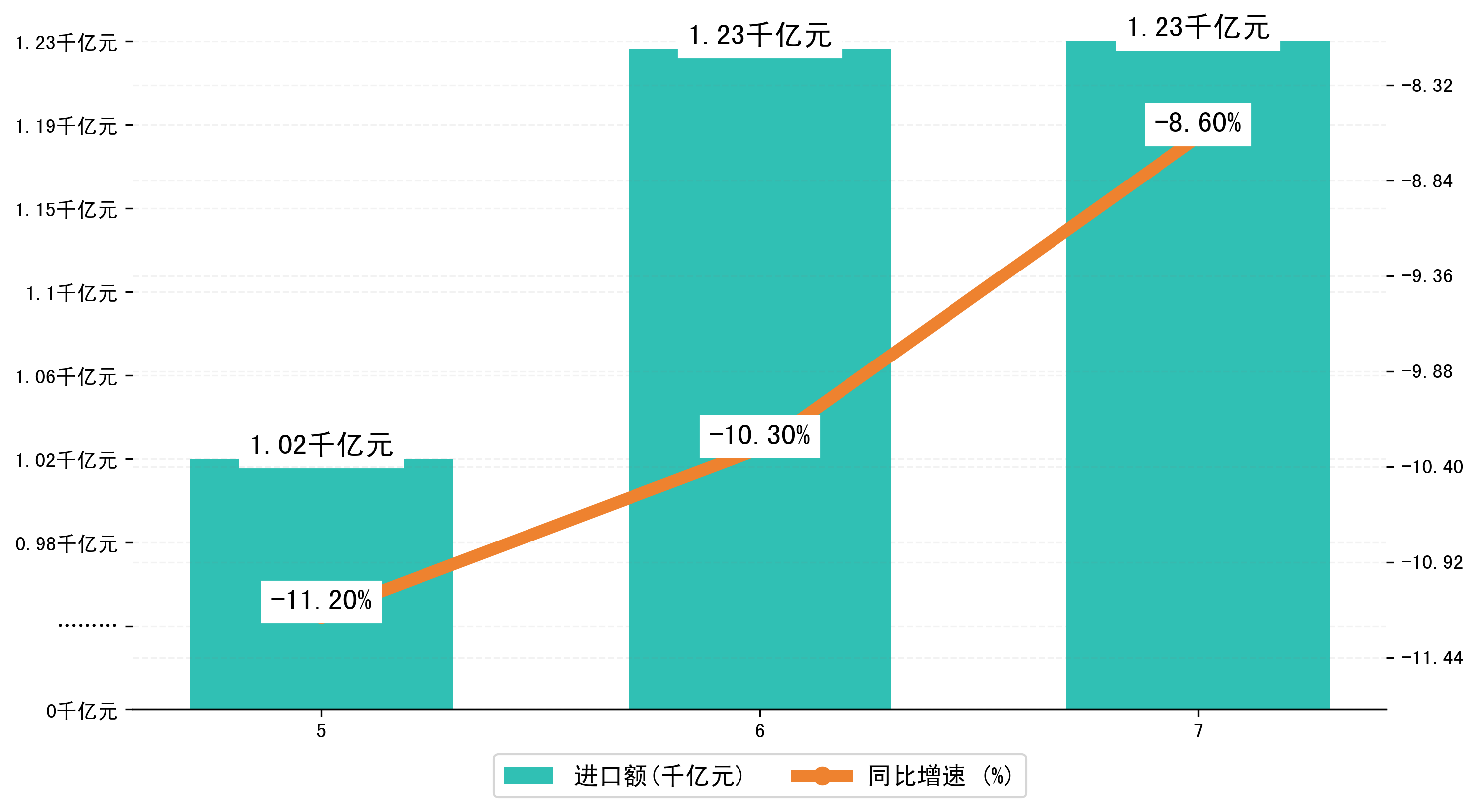 以人民币计,2023年1-7月深圳市进口额为7518,6514.7216万元,相比上年同期减少了702,5250.2568万元,同比减少了-8.60%。