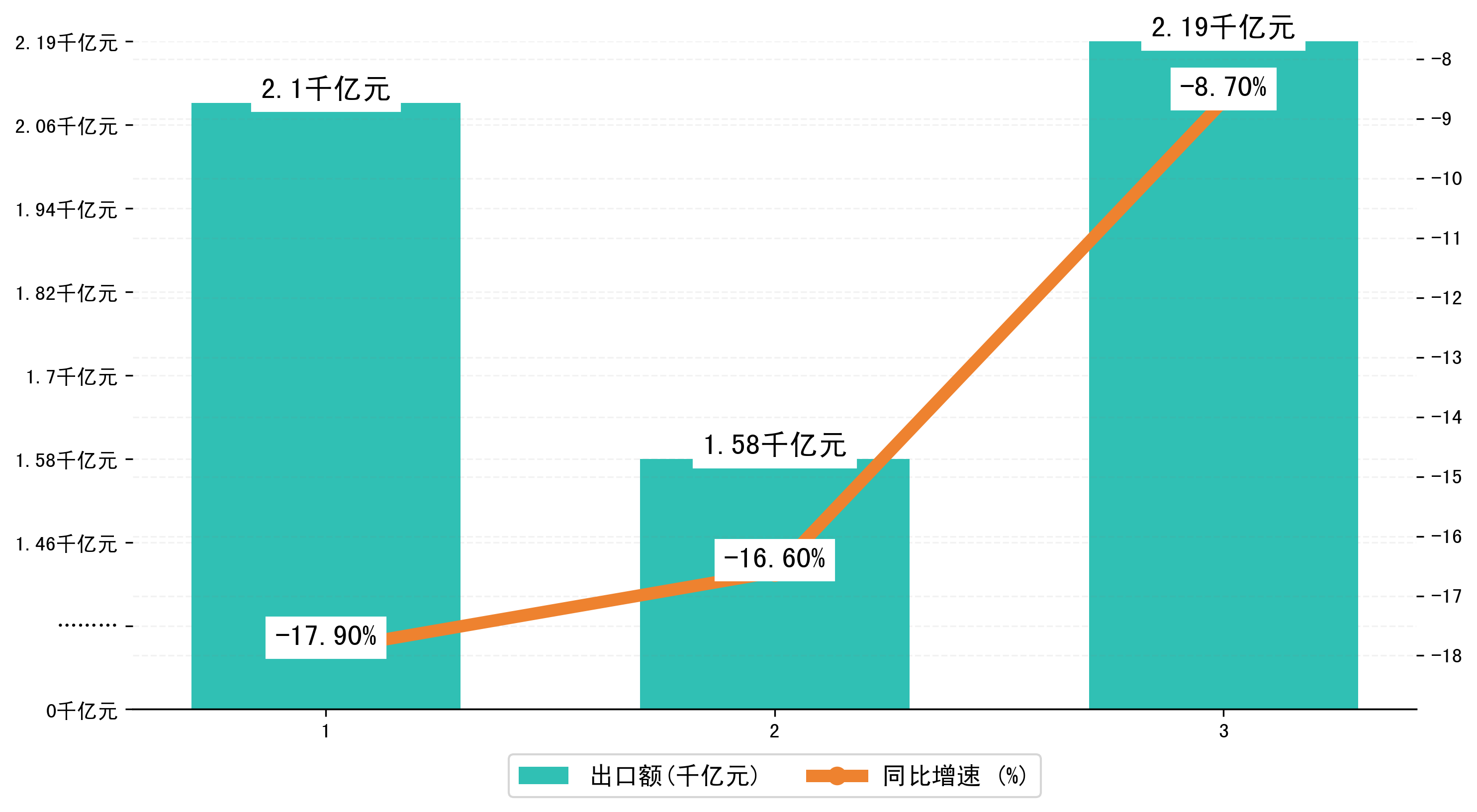 以人民币计,2025年3月深圳市出口额为2185,2994.5172万元,相比上月增加了607,7847.6721万元;相比上年同期增加了170,9696.7532万元,同比减少了-8.70%。