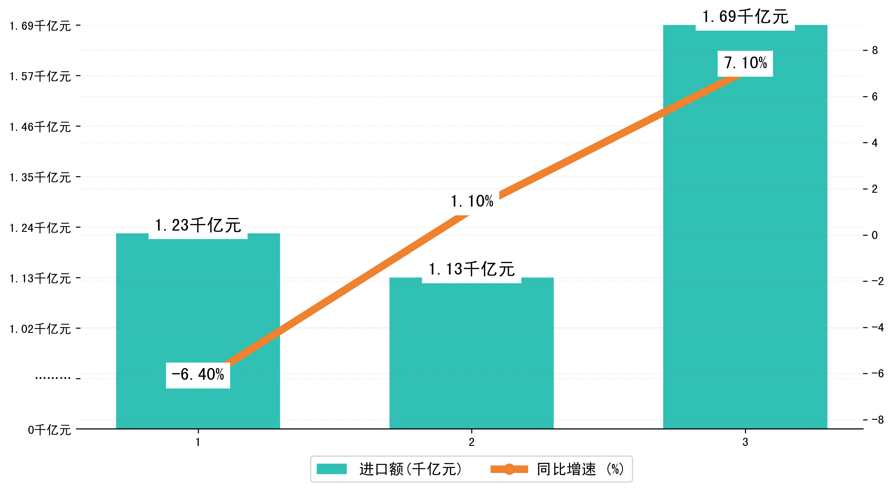 以人民币计,2025年3月深圳市进口额为1685,1830.4008万元,相比上月增加了551,2633.7985万元;相比上年同期增加了239,6715.5705万元,同比增加了7.10%。