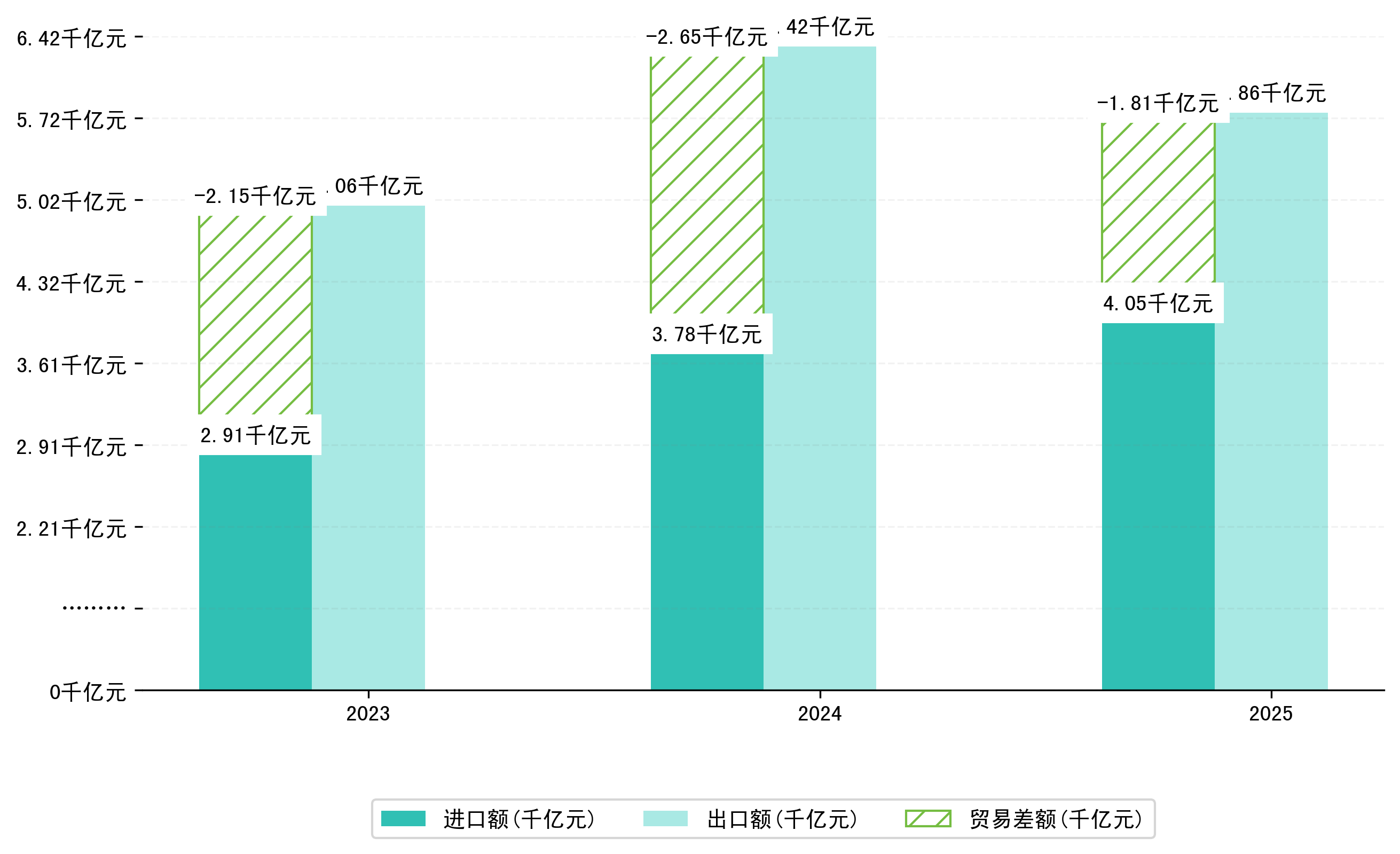 以人民币计,2025年3月深圳市贸易差额为500,1164,1164万元(贸易顺差),相比上月增加了56,5213,8736万元,即7,9488,5263万美元;相比上年同期减少了68,7018,8173万元,同比减少-12.08%。