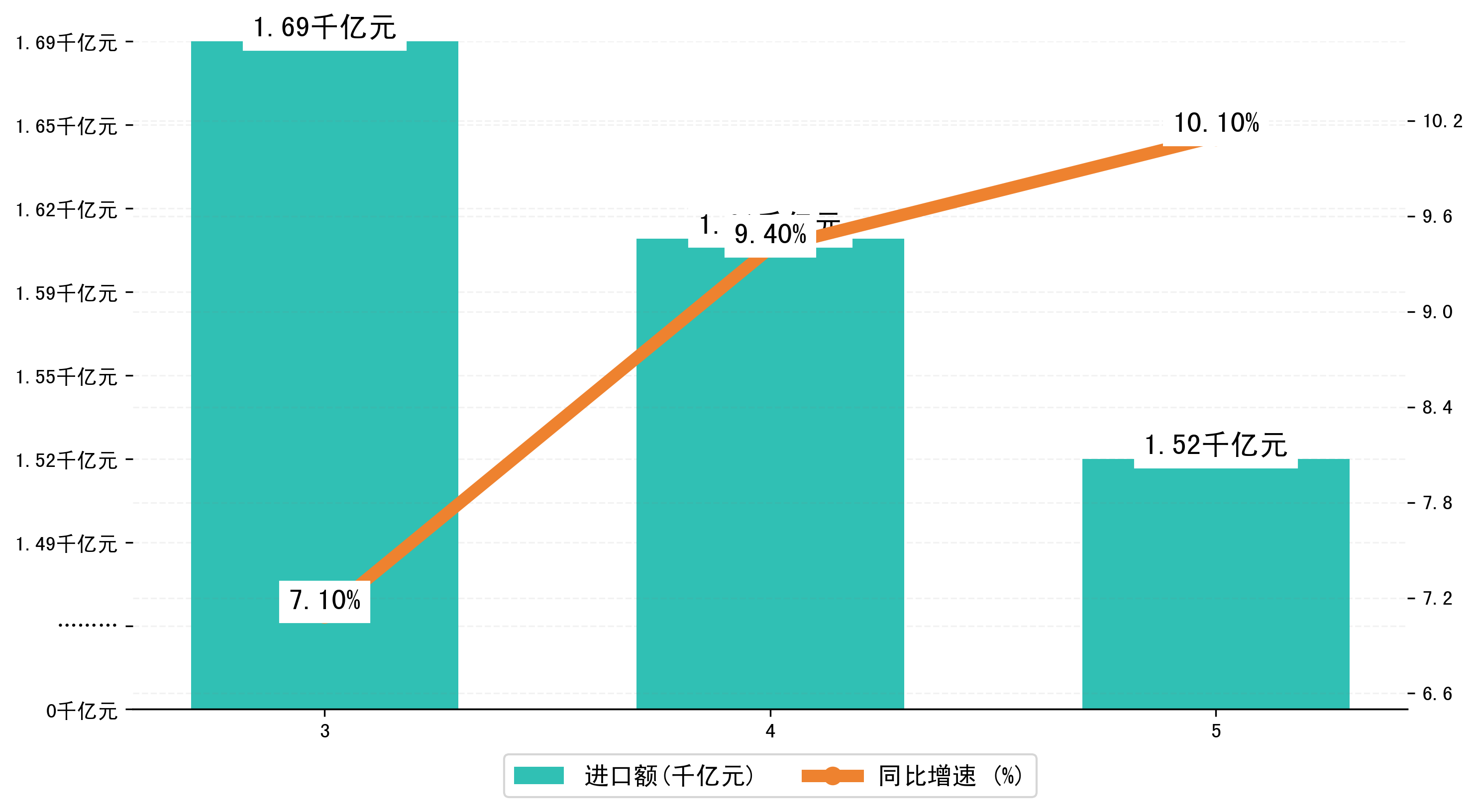 以人民币计,2025年1-5月深圳市进口额为7166,2843.478万元,相比上年同期增加了640,9182.4298万元,同比增加了10.10%。
