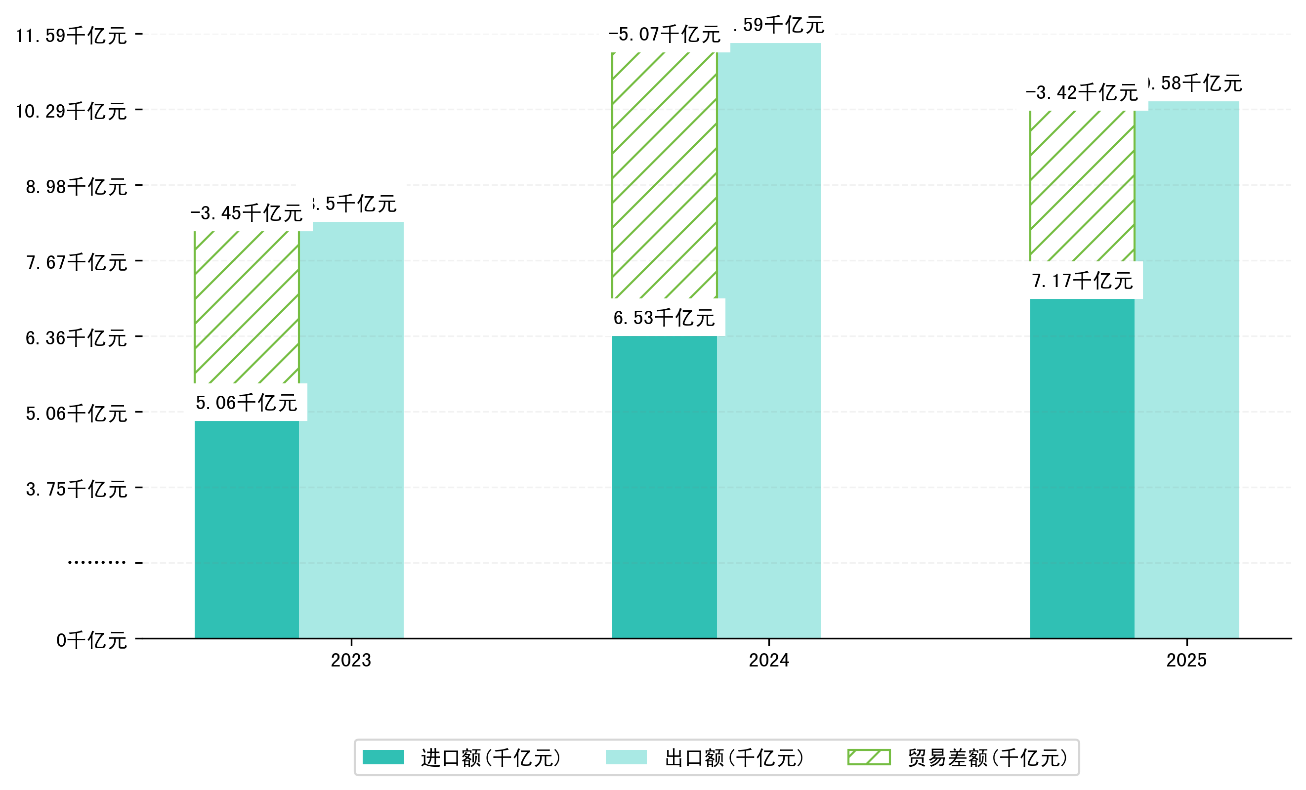 以人民币计,2025年1-5月深圳市贸易差额为3418,5618,4458万元(贸易顺差),相比上年同期减少了1648,7268,6969万元,同比减少-32.54%。