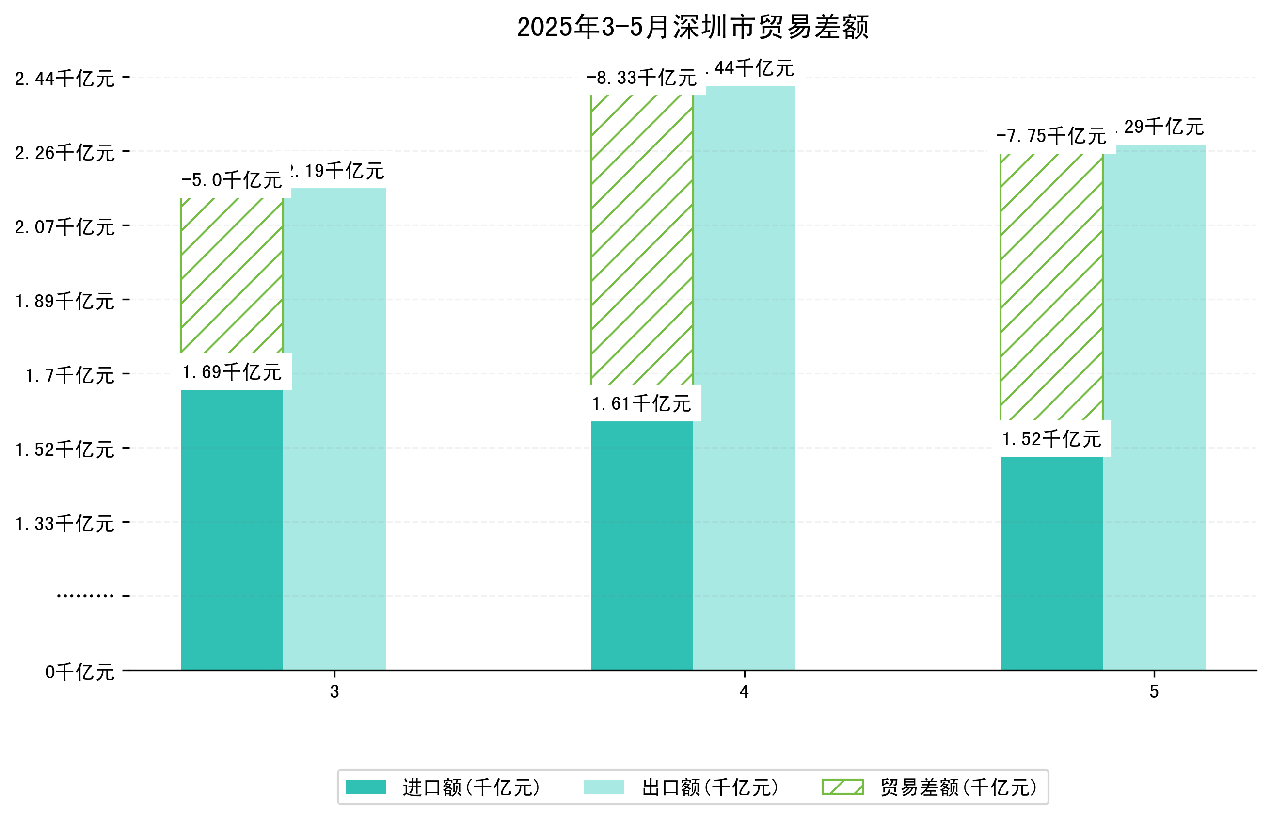 2025年5月深圳市进出口总额及进出口差额统计分析