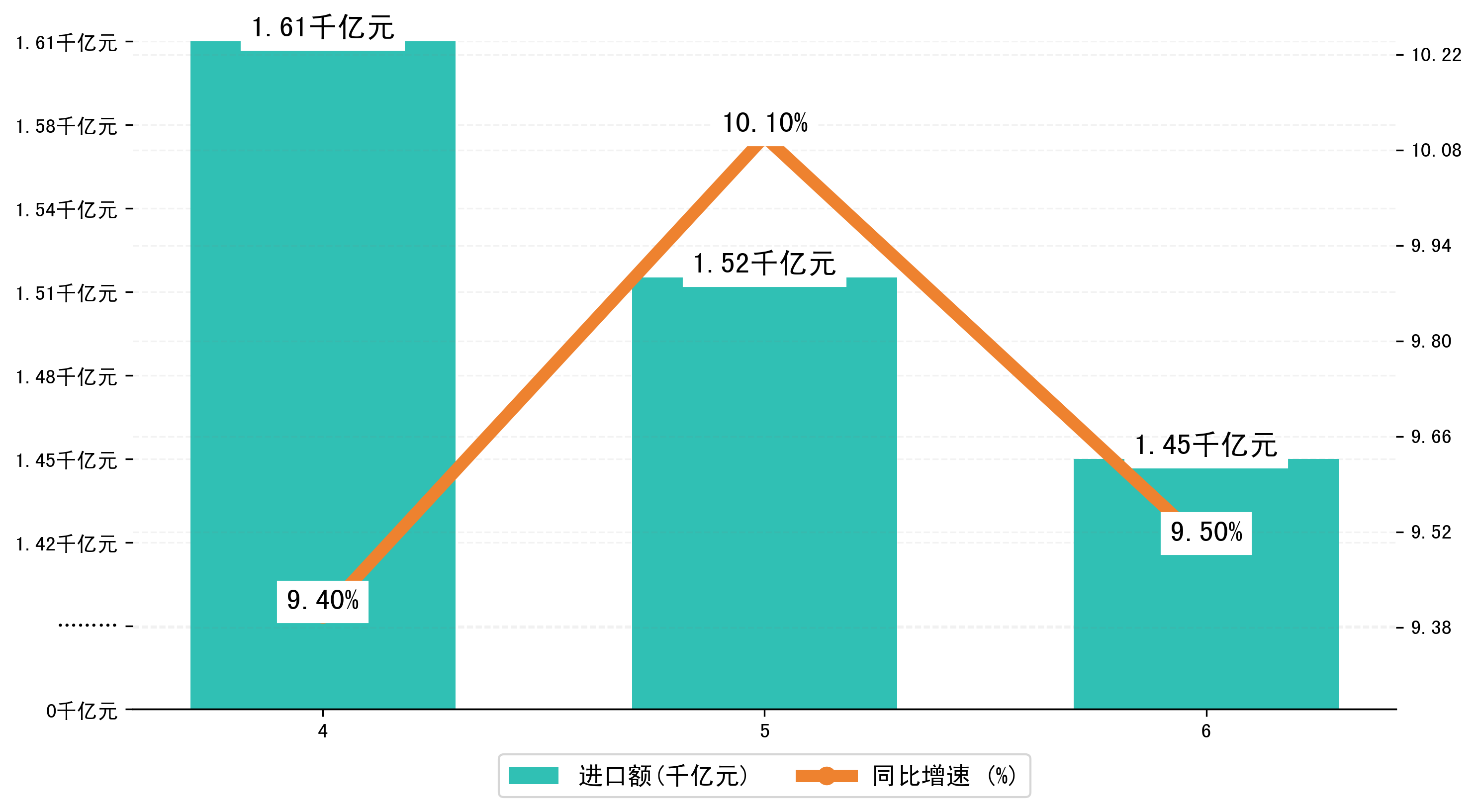 以人民币计,2025年6月深圳市进口额为1451,4563.8083万元,相比上月减少了67,4327.359万元;相比上年同期增加了53,8029.2931万元,同比增加了9.50%。