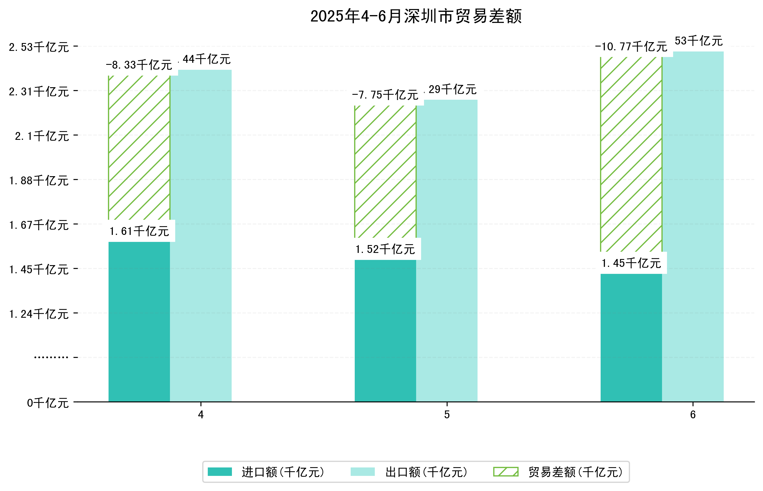 2025年6月深圳市进出口总额及进出口差额统计分析