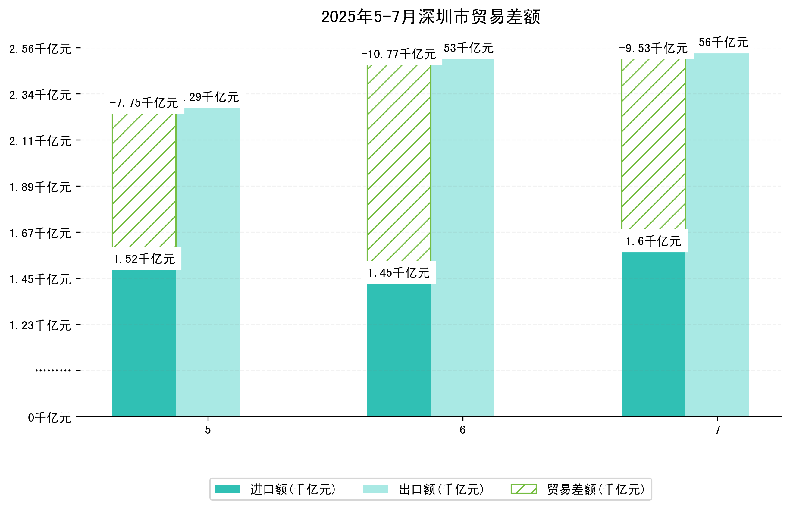 2025年7月深圳市进出口总额及进出口差额统计分析