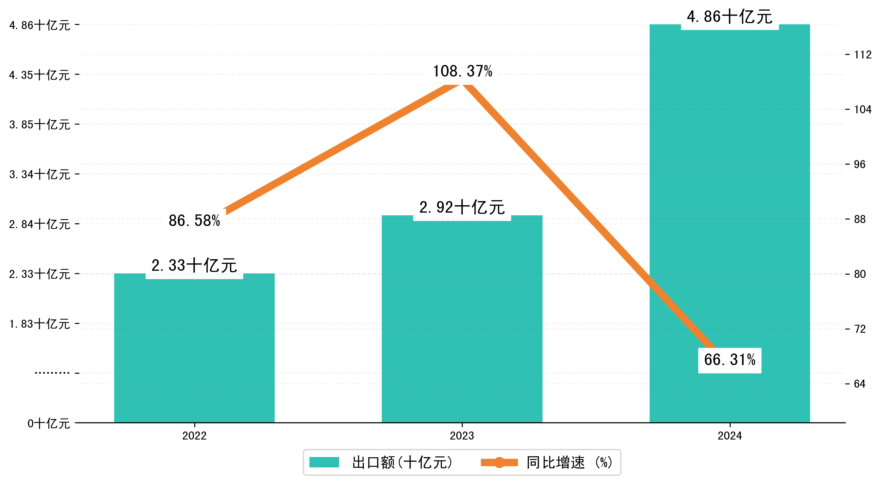 以人民币计,2024年1-10月石河子市出口额为48,5892.6934万元,相比上年同期增加了19,3732.3898万元,同比增加了66.40%。