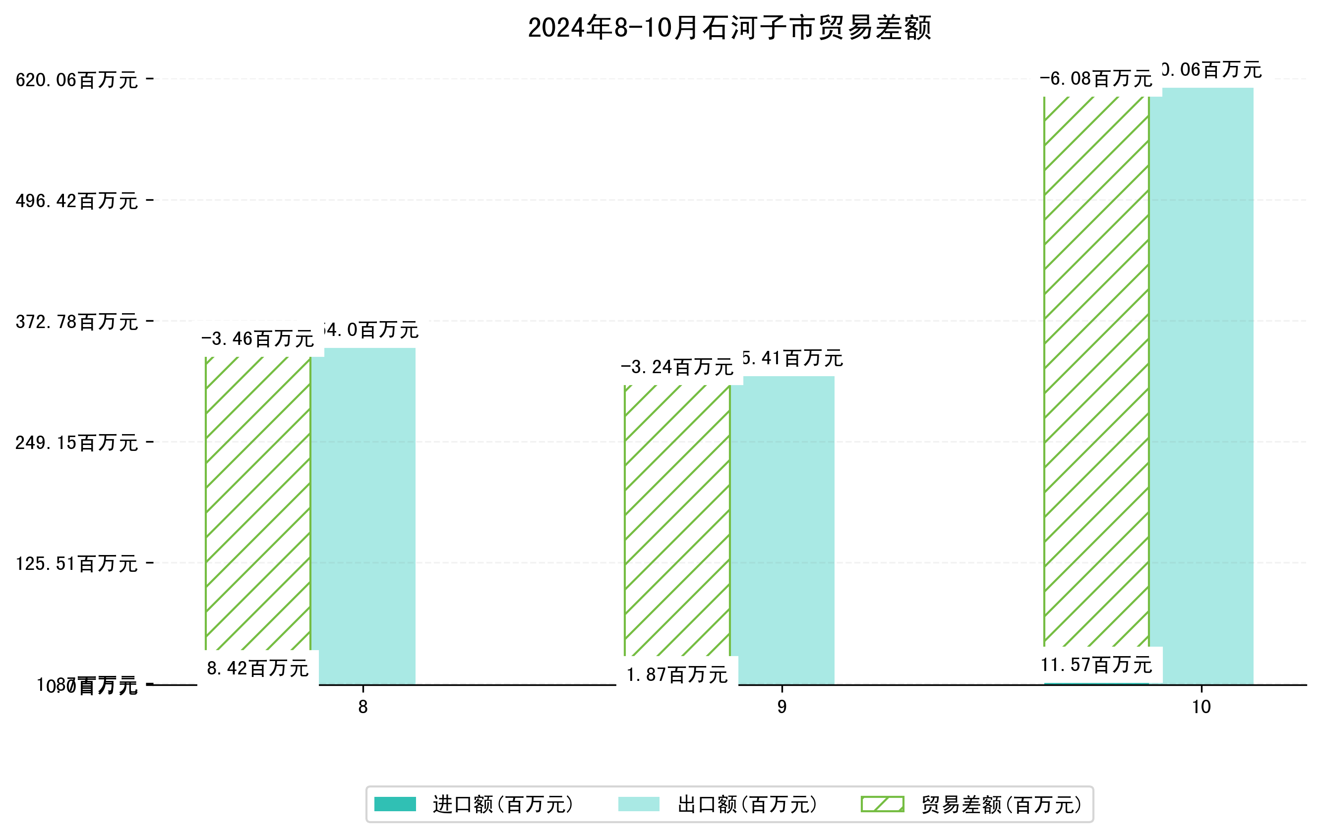 2024年10月石河子市进出口总额及进出口差额统计分析