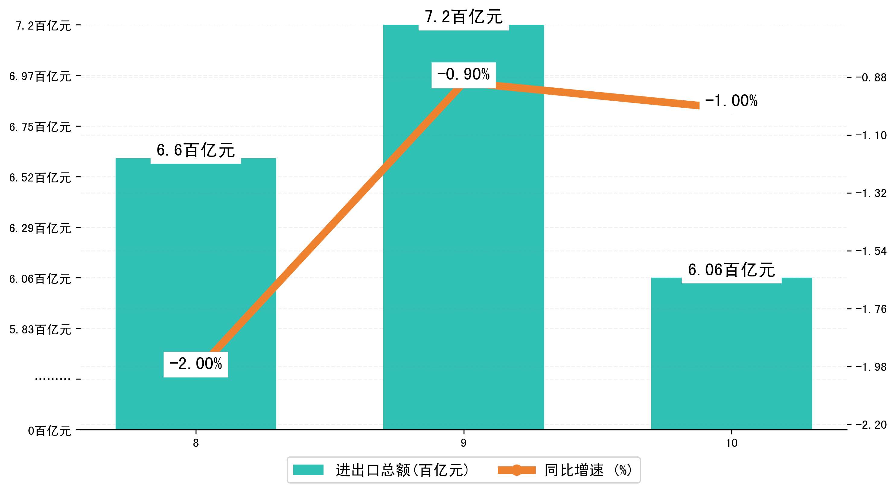 2025年10月全国进出口数据进出口总额及进出口差额统计分析