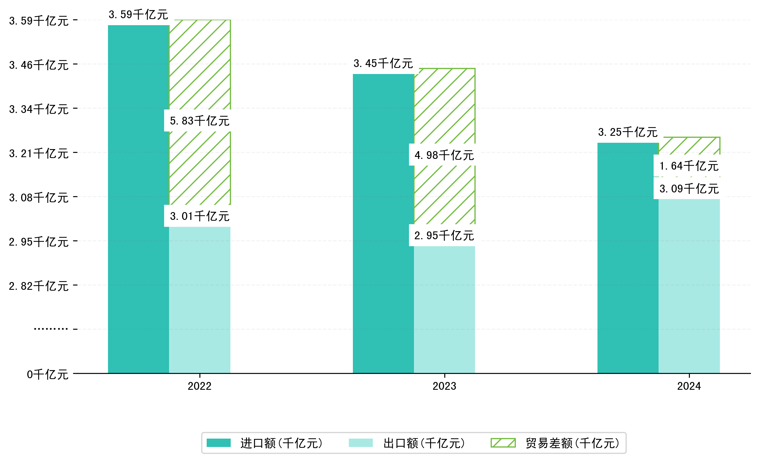 以人民币计,2024年1-10月辽宁省贸易差额为163,6947,8241万元(贸易逆差),相比上年同期增加了334,2971,2717万元,同比增加-67.13%。