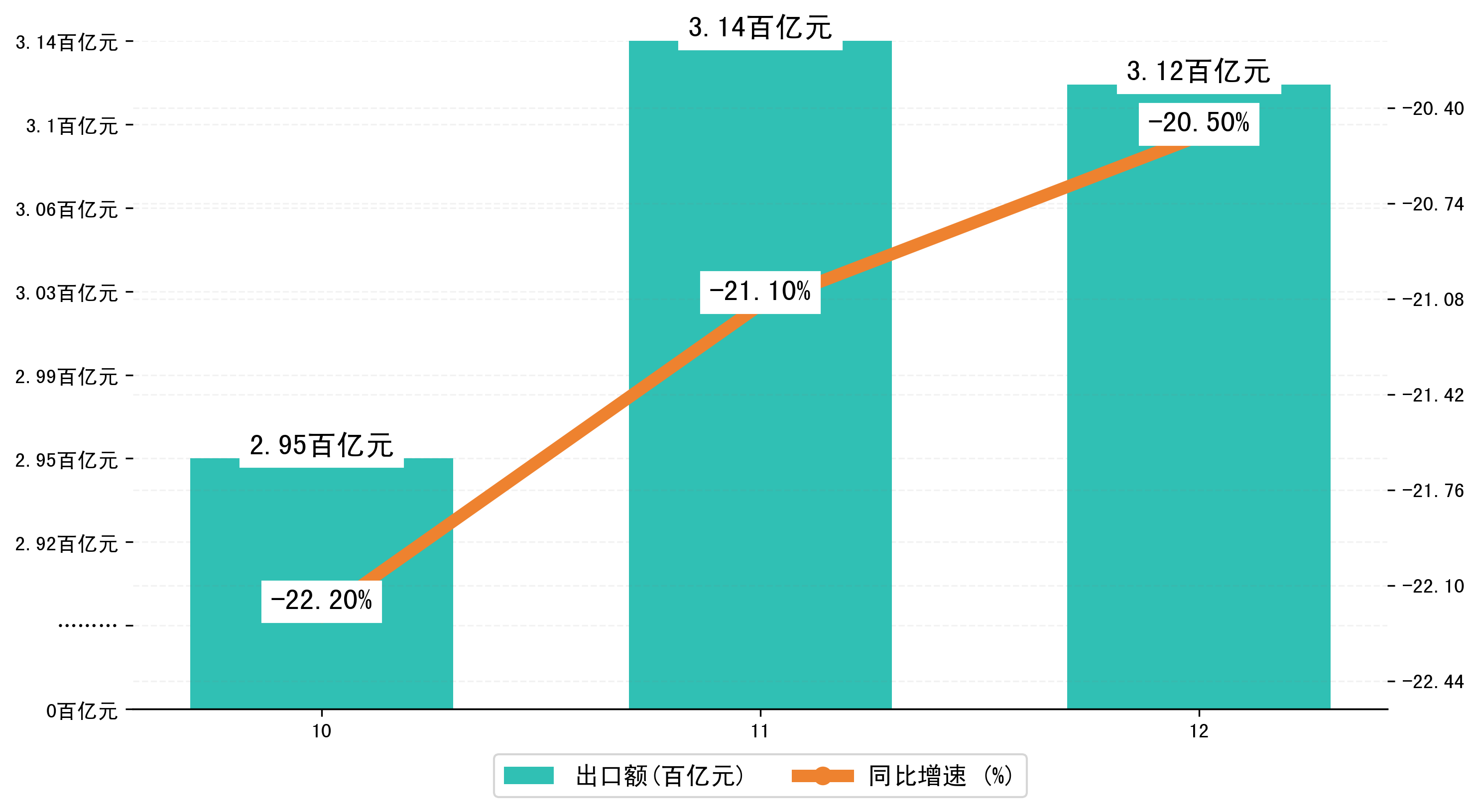 以人民币计,2024年12月佛山市出口额为311,9581.8607万元,相比上月减少了1,9495.0376万元;相比上年同期减少了62,6917.0808万元,同比减少了-20.50%。