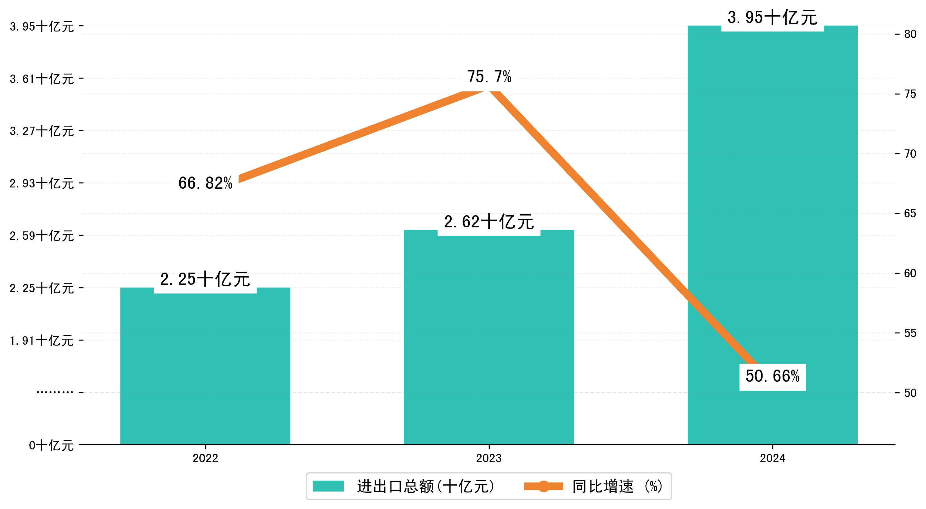 以美元计,2024年1-8月石河子市进出口总额为5,5528.8819万美元,相比上年同期增加了1,8113.4871万美元,同比增加48.50%。