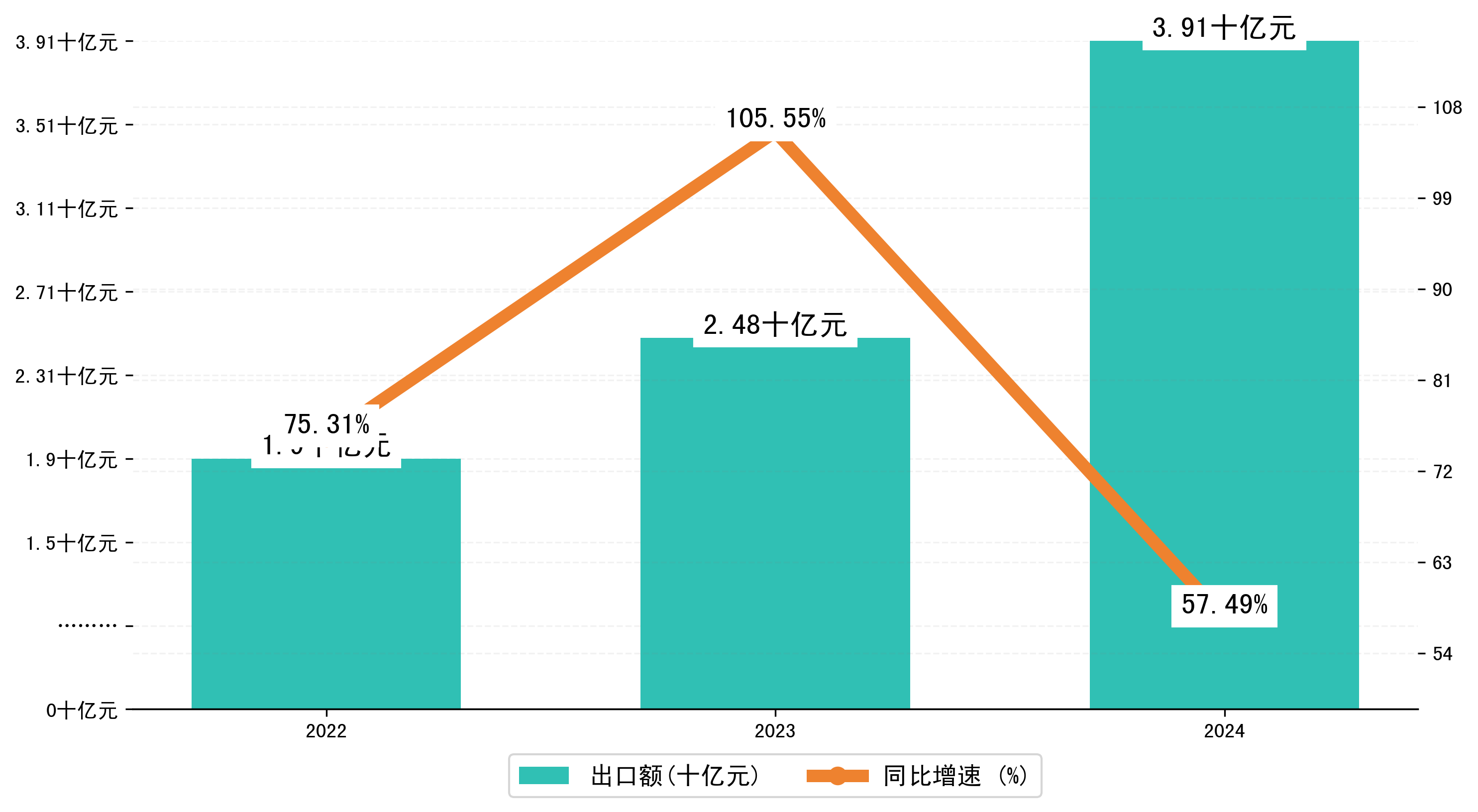 以人民币计,2024年1-8月石河子市出口额为39,1302.6029万元,相比上年同期增加了14,2840.9808万元,同比增加了57.50%。