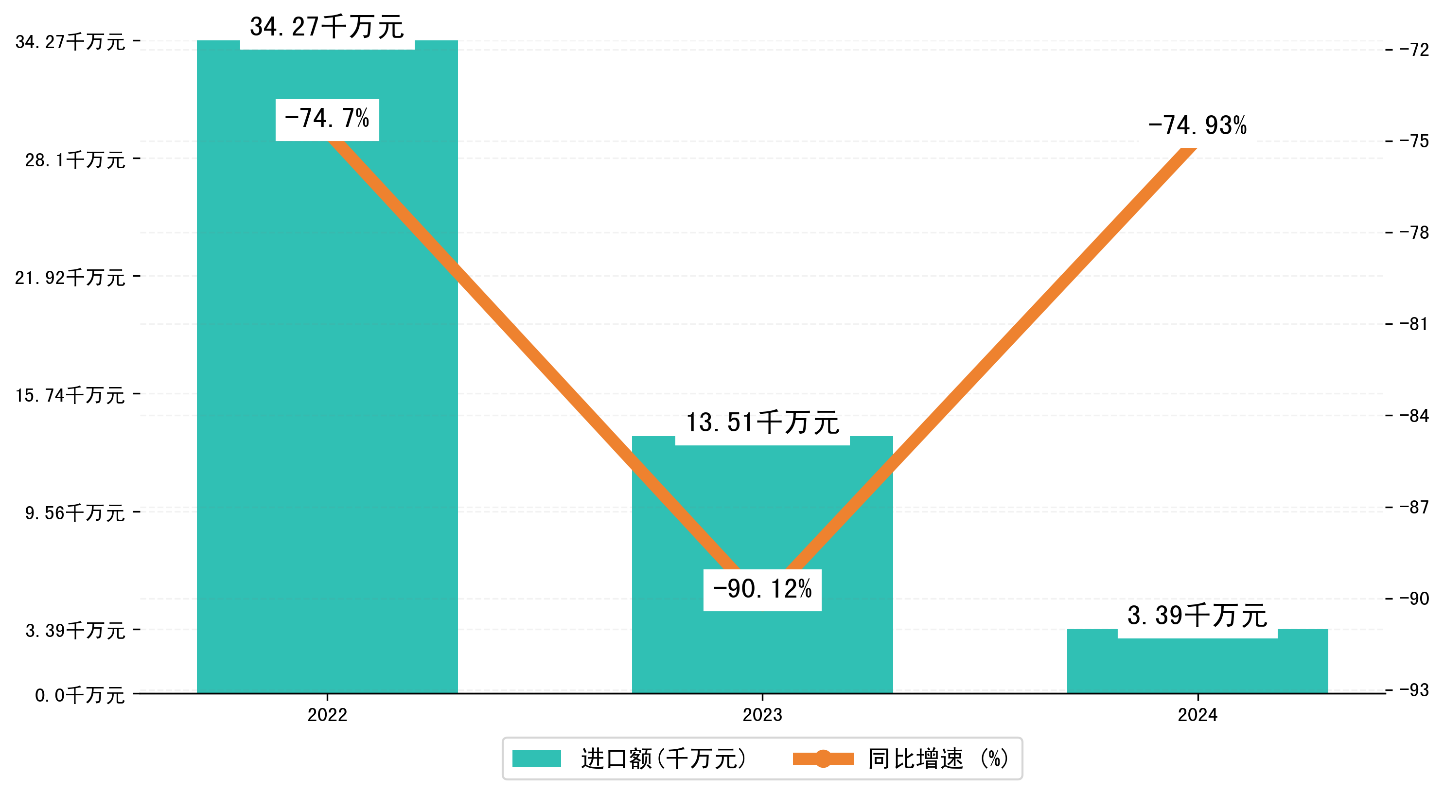 以美元计,2024年1-8月石河子市进口额为474.058万美元,相比上年同期减少了1418.7671万美元,同比减少-75.00%。