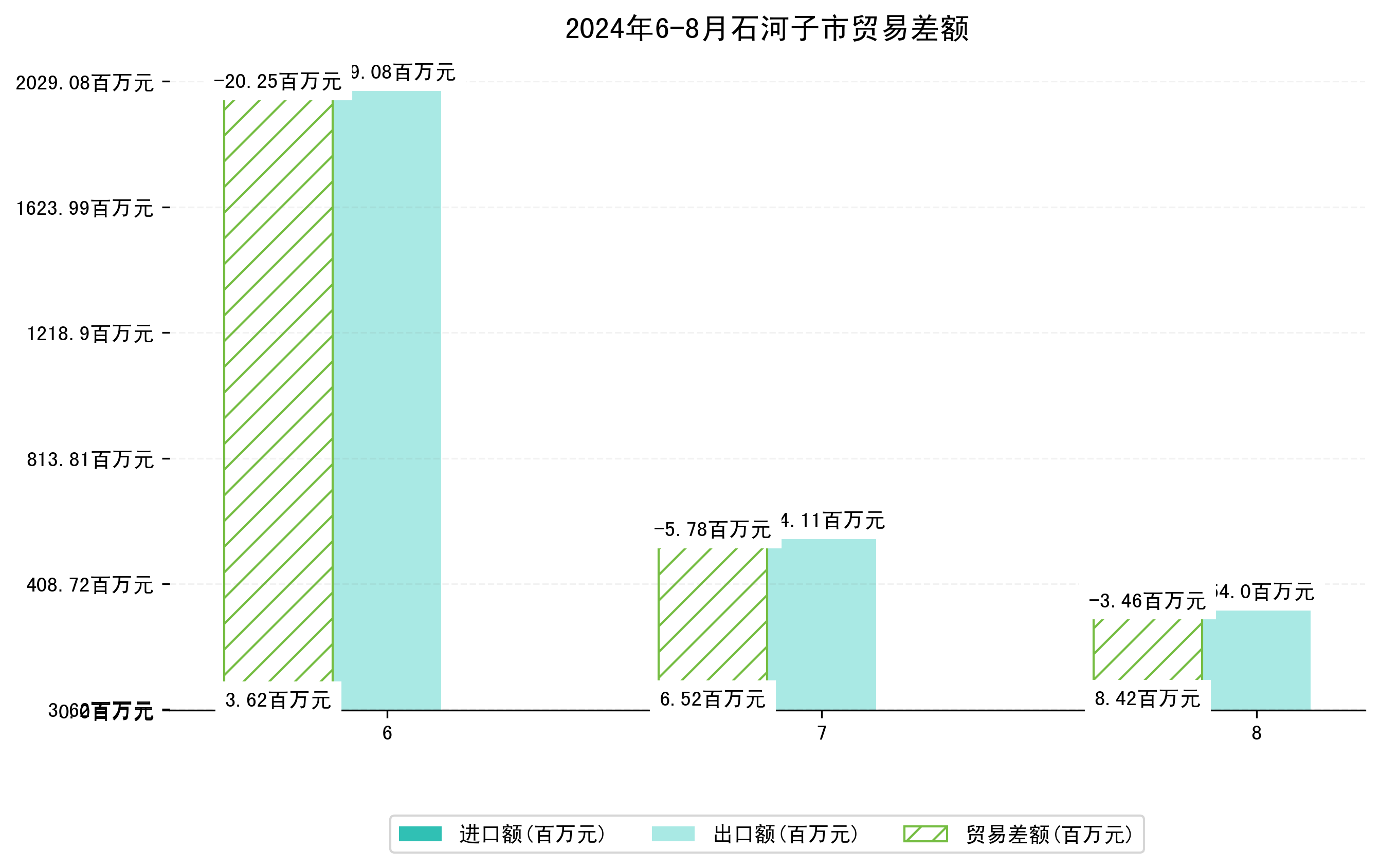 2024年8月石河子市进出口总额及进出口差额统计分析