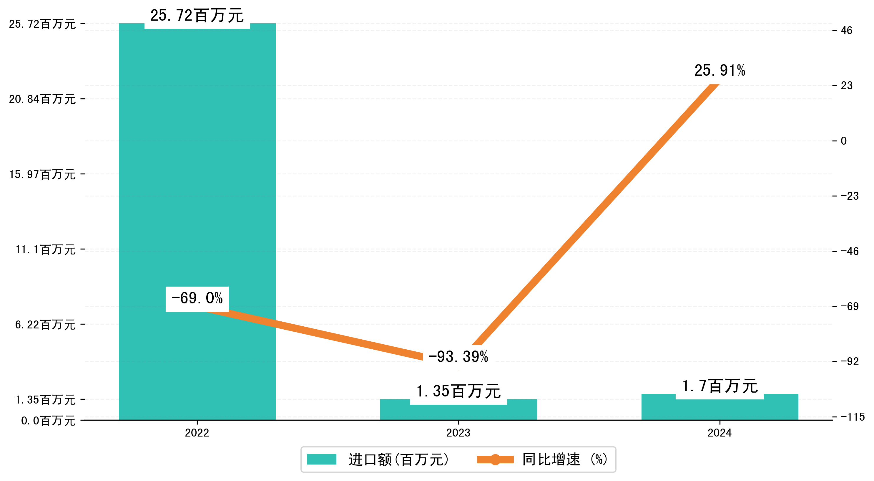 以美元计,2024年1月石河子市进口额为23.9684万美元,相比上月减少了19.799万美元;相比上年同期增加了4.5725万美元,同比增加23.60%。