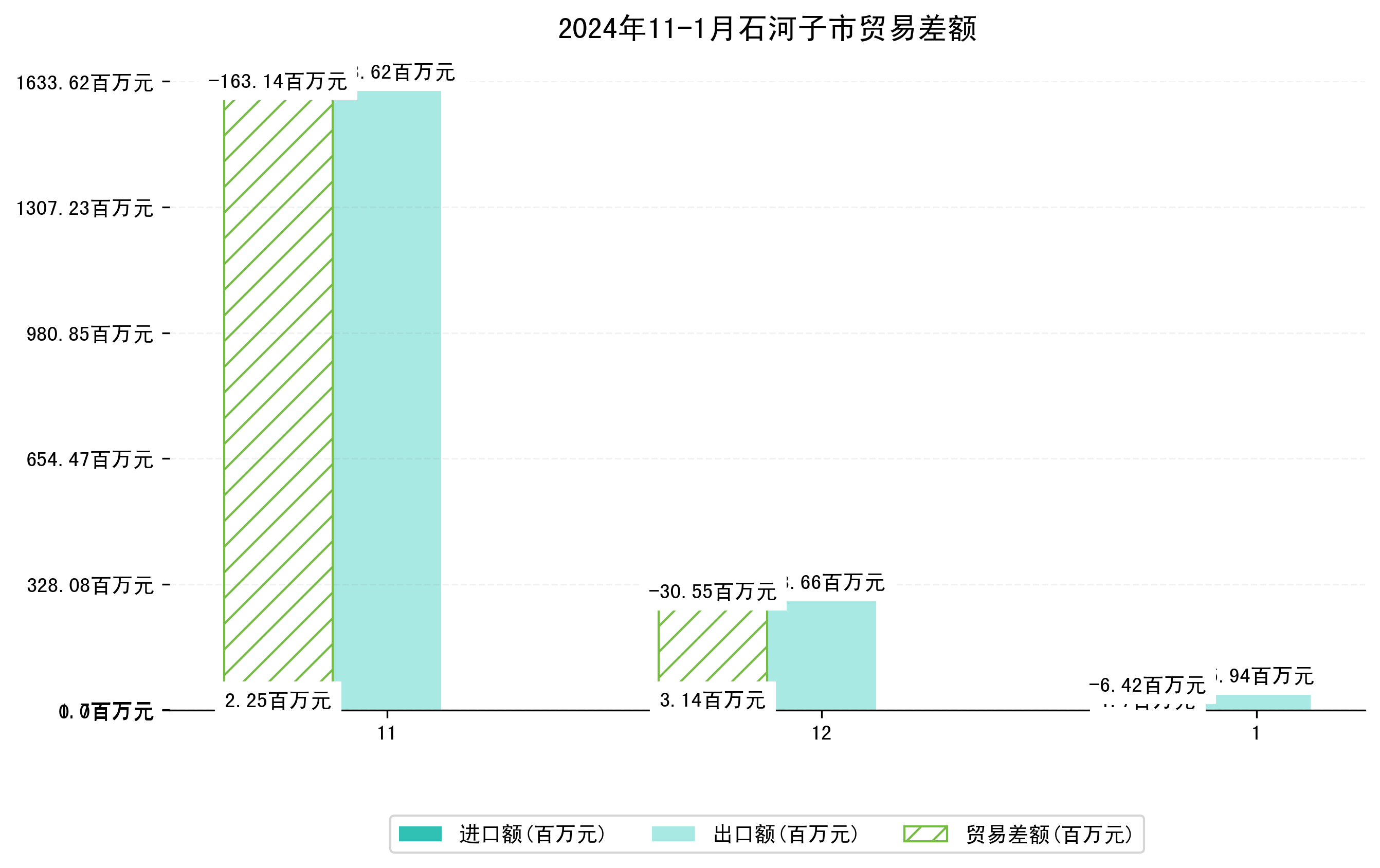 2024年1月石河子市进出口总额及进出口差额统计分析