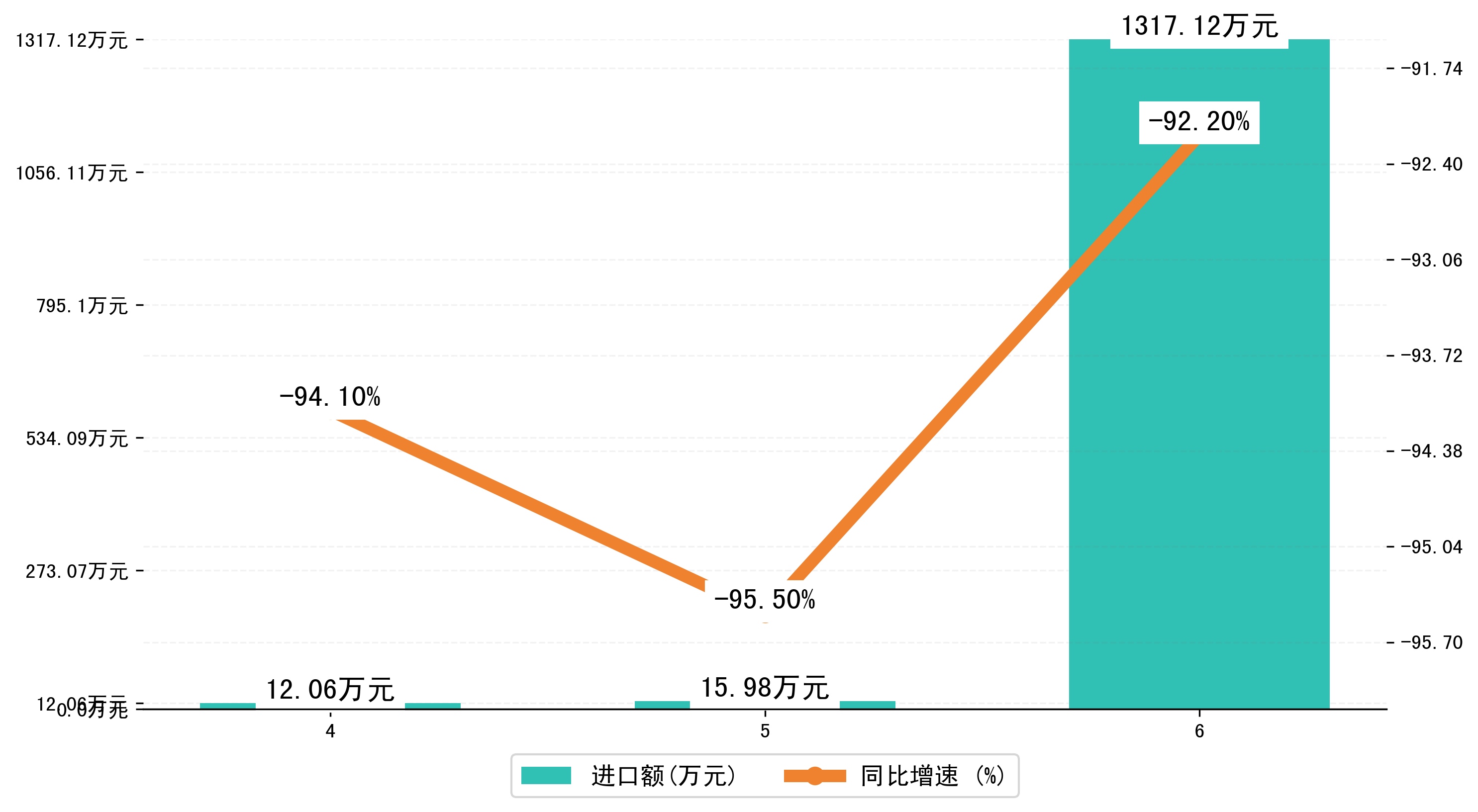 以人民币计,2023年1-6月石河子市进口额为2014.0622万元,相比上年同期减少了2,3839.3561万元,同比减少了-92.20%。