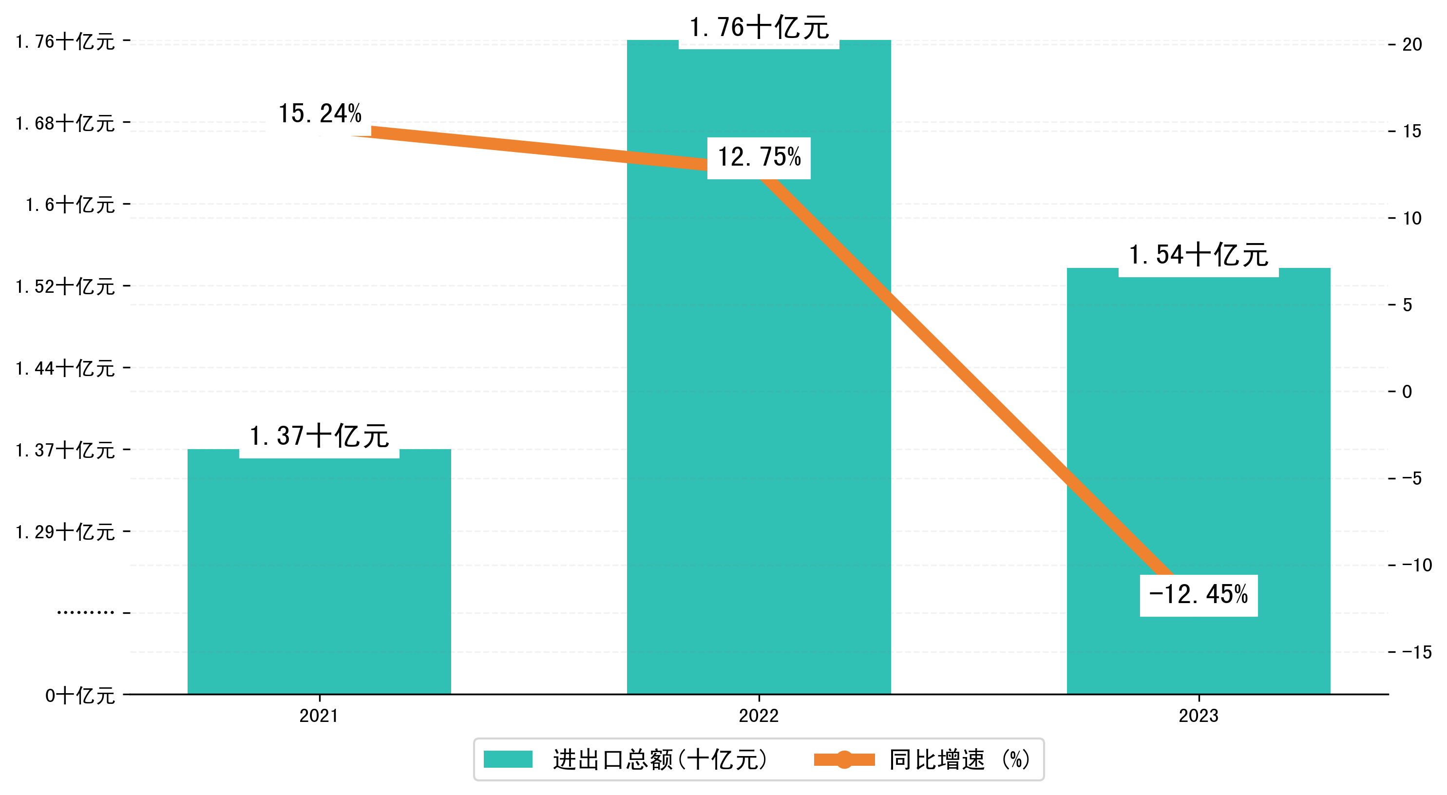 以人民币计,2023年1-6月石河子市进出口总额为15,3992.1372万元,相比上年同期减少了2,1893.768万元,同比减少了-12.40%。