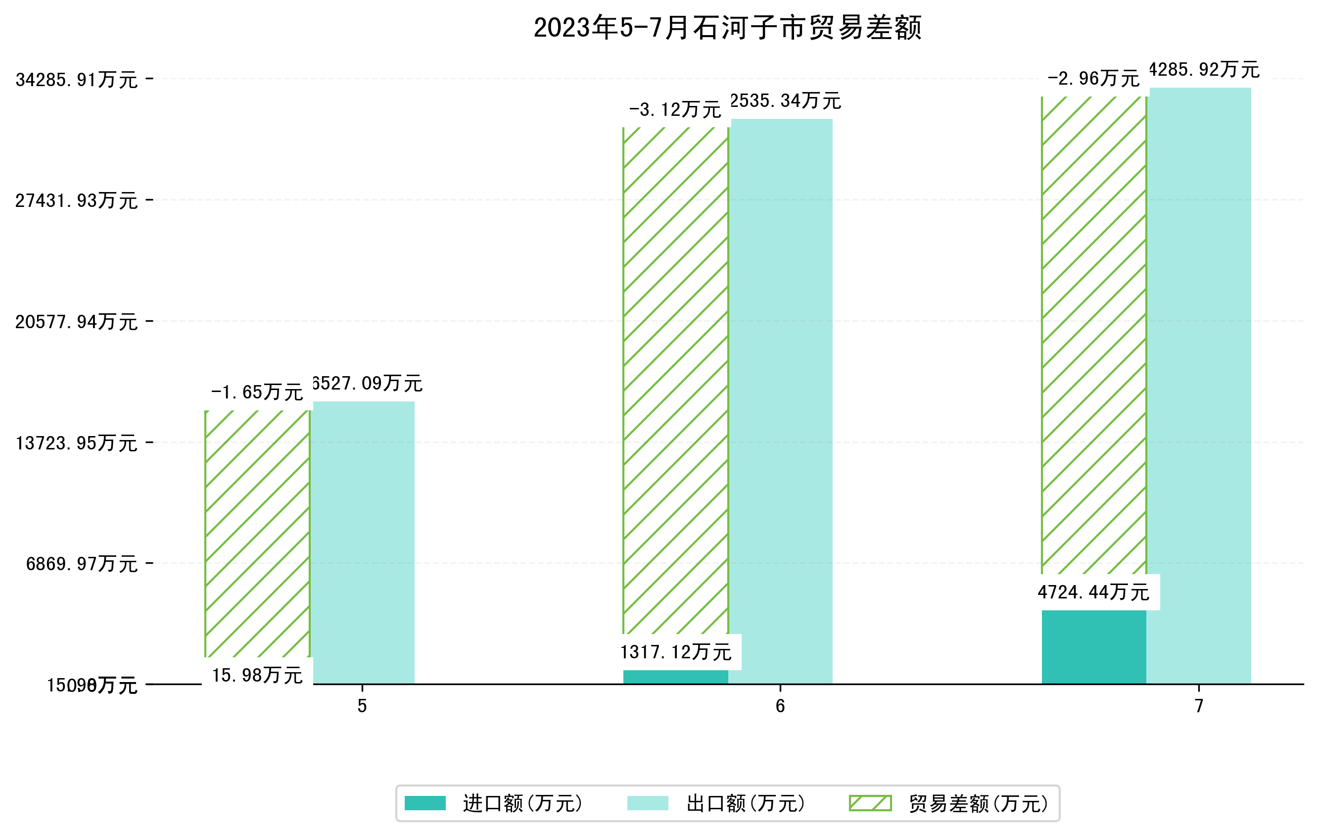 2023年7月石河子市进出口总额及进出口差额统计分析