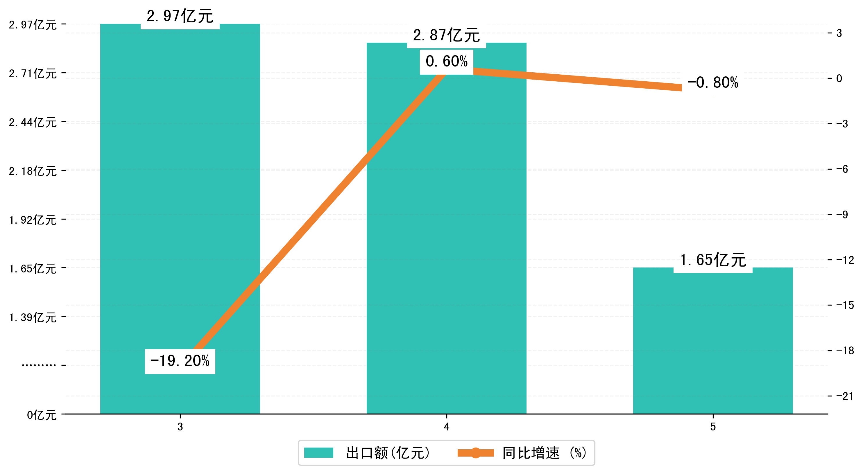 (图一:2023年3-5月石河子市进出口总额)