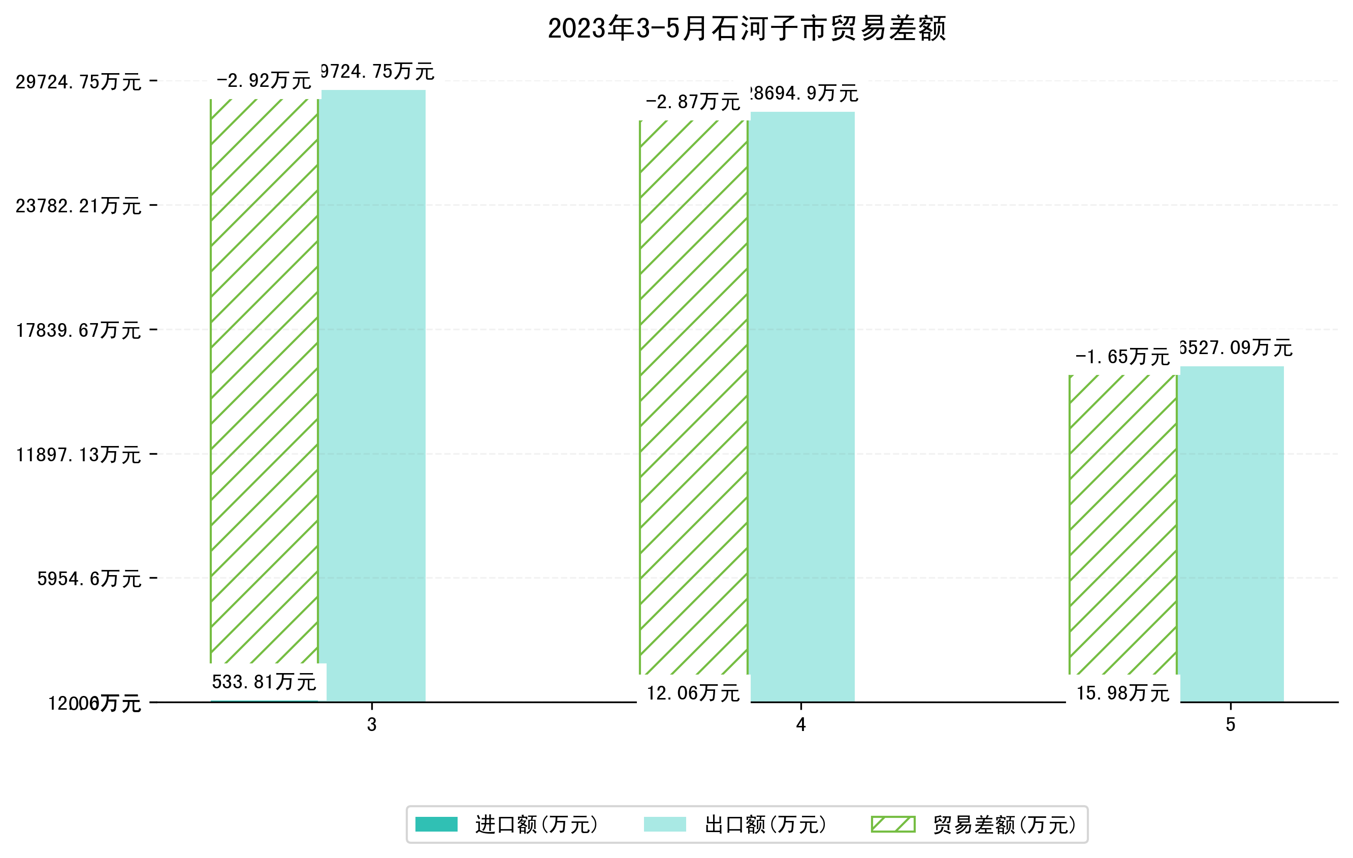 (图四:2023年3-5月石河子市贸易差额)