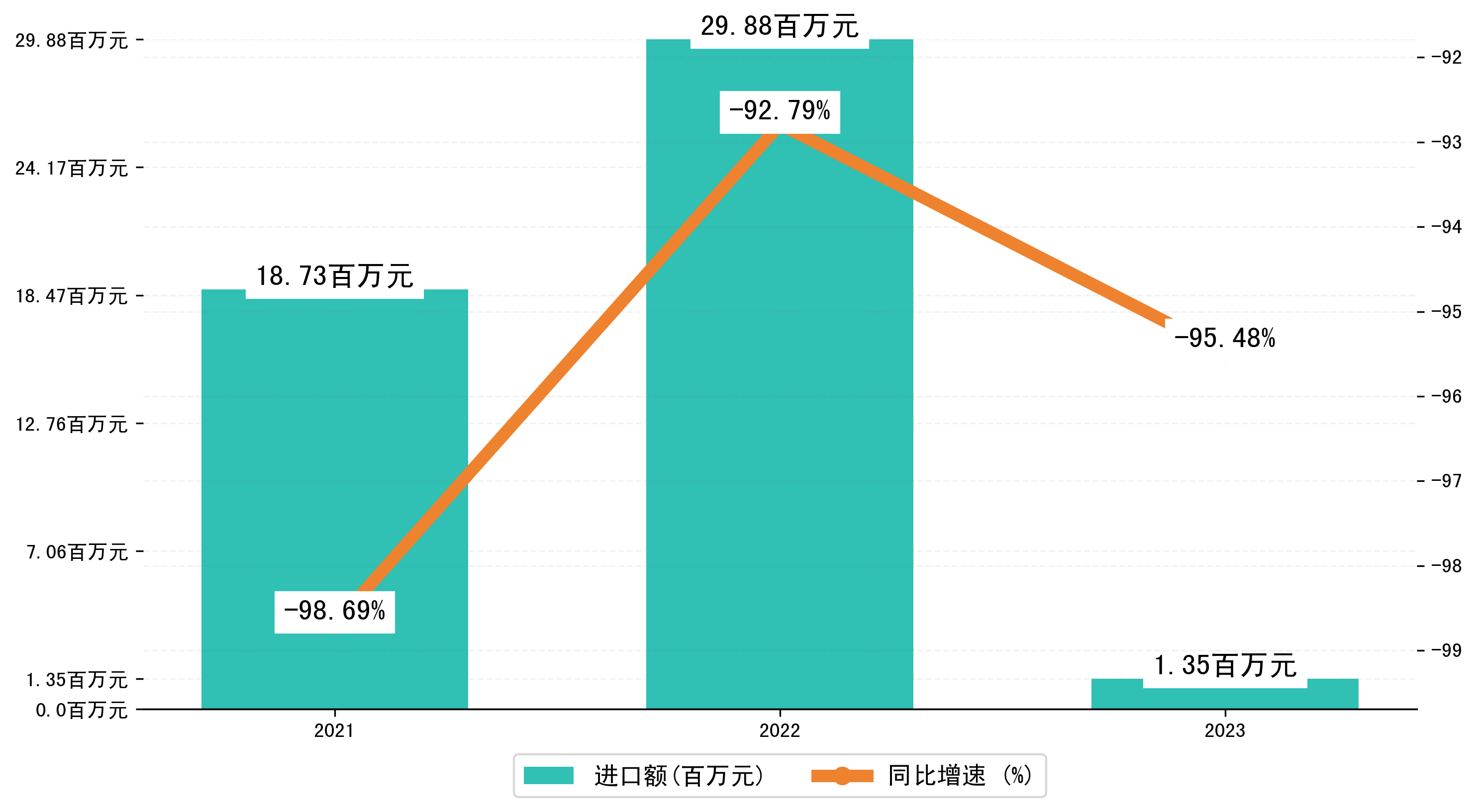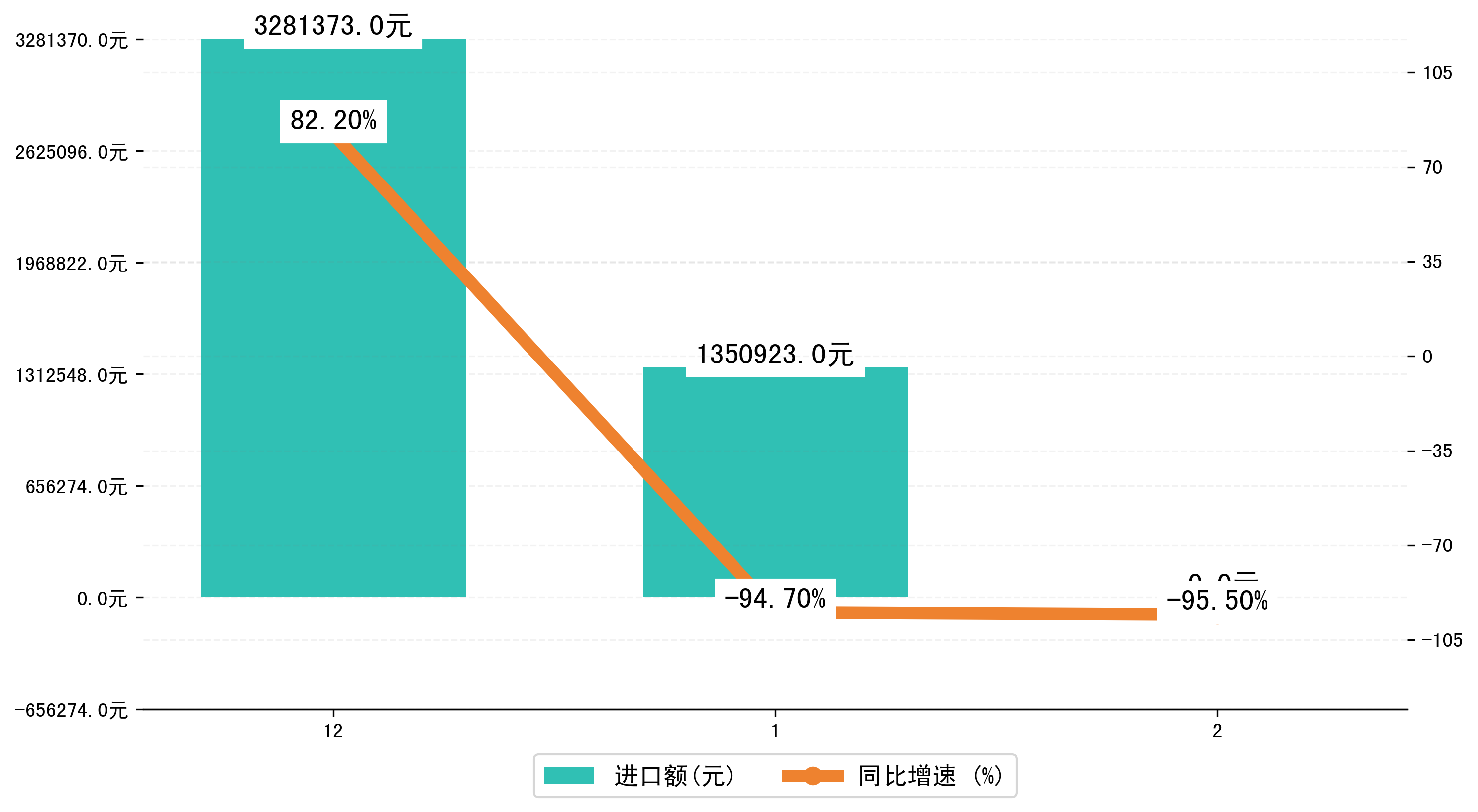 以人民币计,2023年2月石河子市进口额为0.0万元,相比上月减少了135.0923万元;相比上年同期减少了416.0864万元,同比减少了-95.50%。