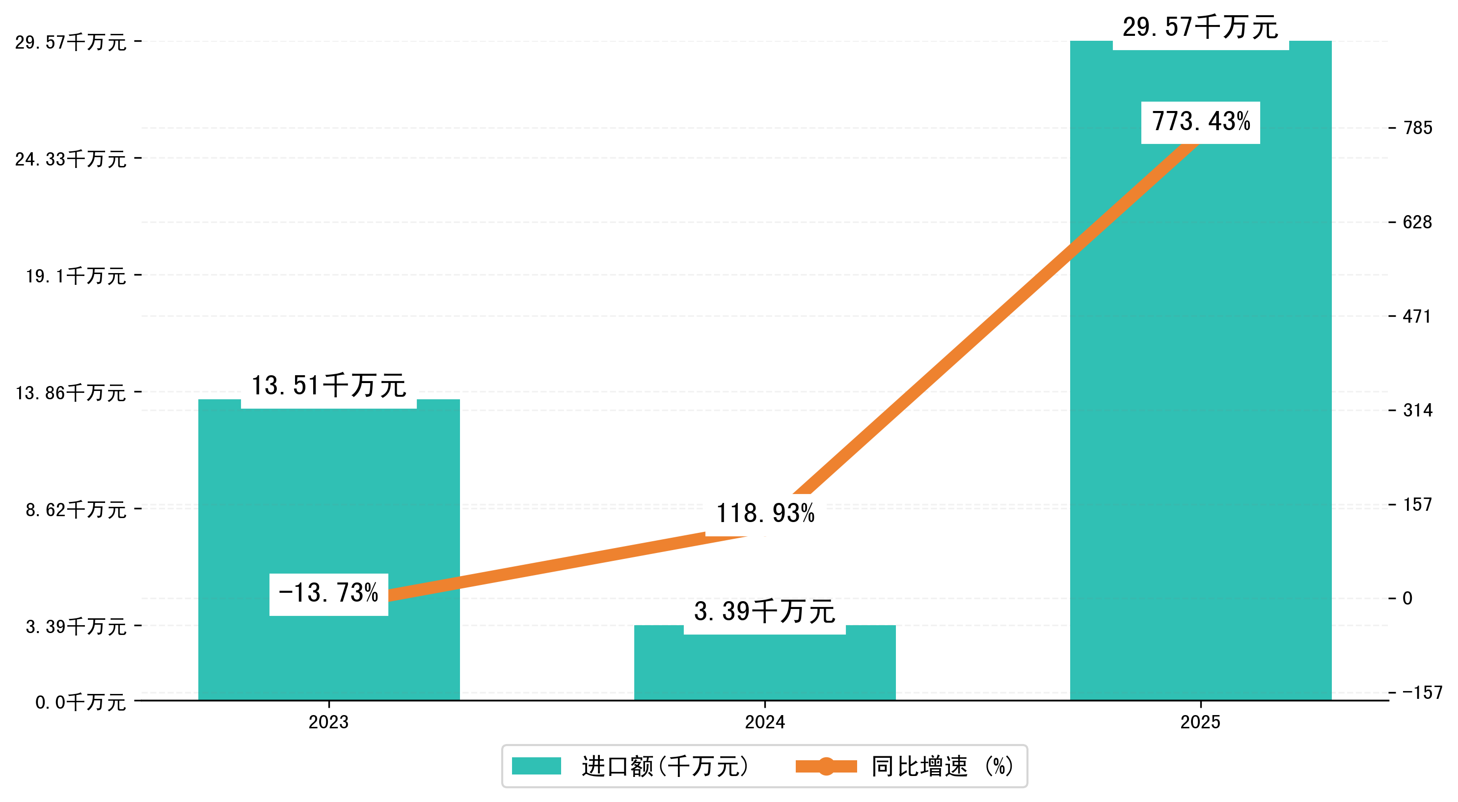 以美元计,2025年1-8月石河子市进口额为4116.6382万美元,相比上年同期增加了3642.5802万美元,同比增加768.40%。