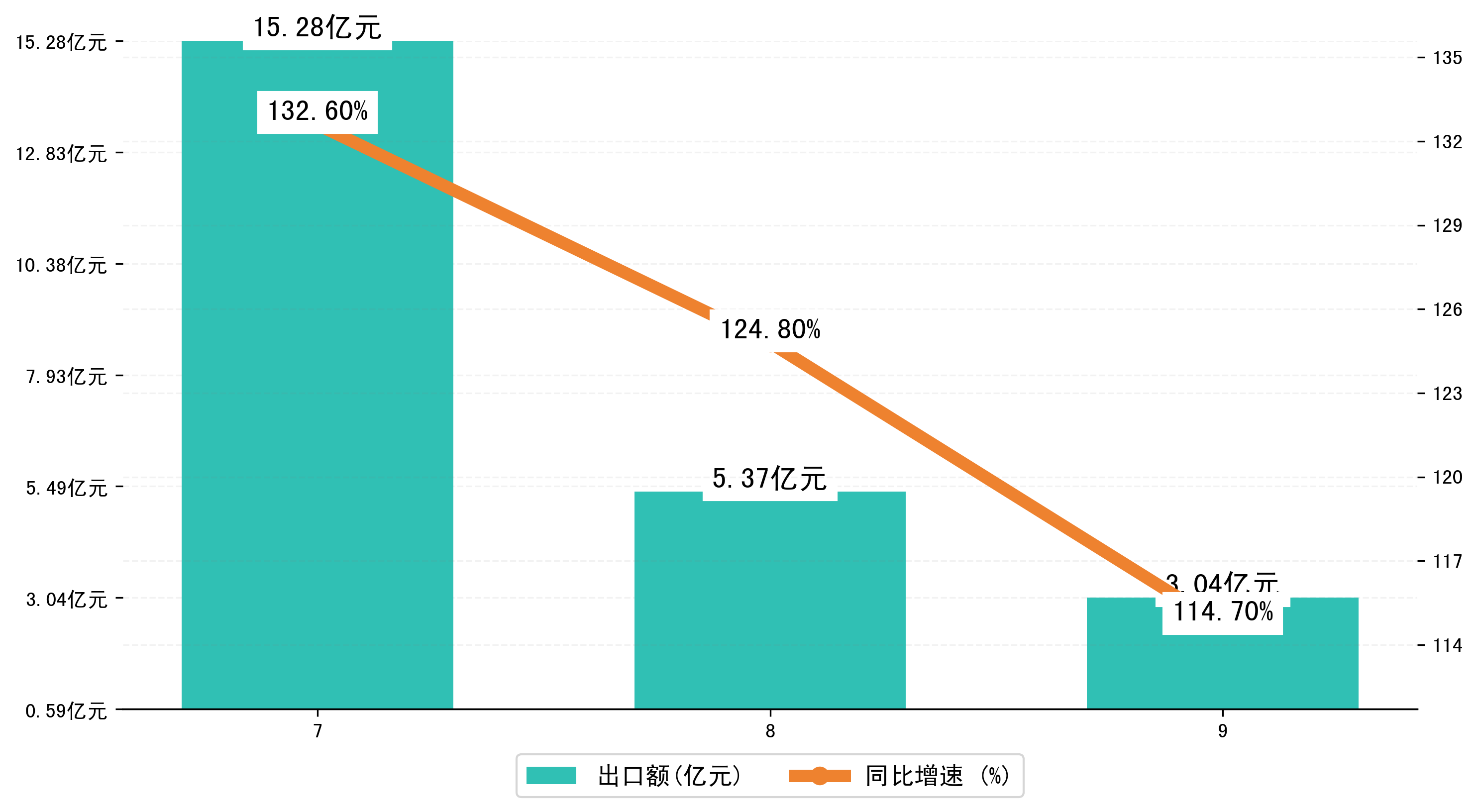 一、2025年9月石河子市单月出口总额及进出口差额统计分析