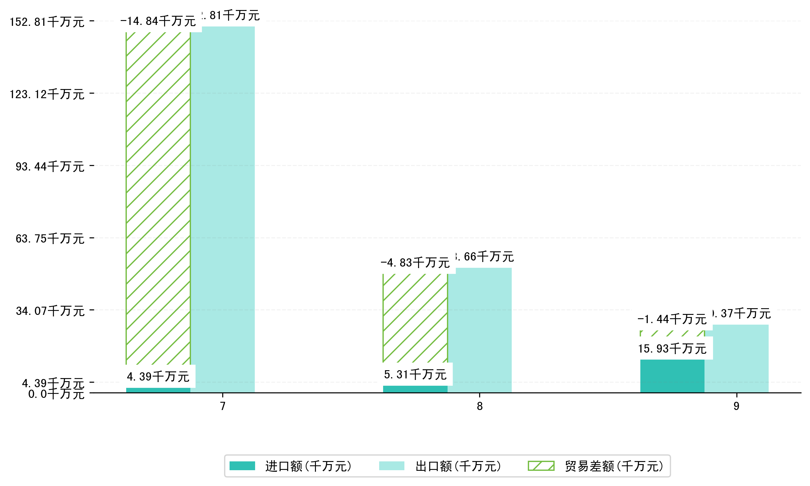 以人民币计,2025年9月石河子市贸易差额为1,4440,4087万元(贸易顺差),相比上月减少了3,3908,6261万元,即4722,4732万美元;相比上年同期减少了1,7913,7075万元,同比减少-55.37%。
